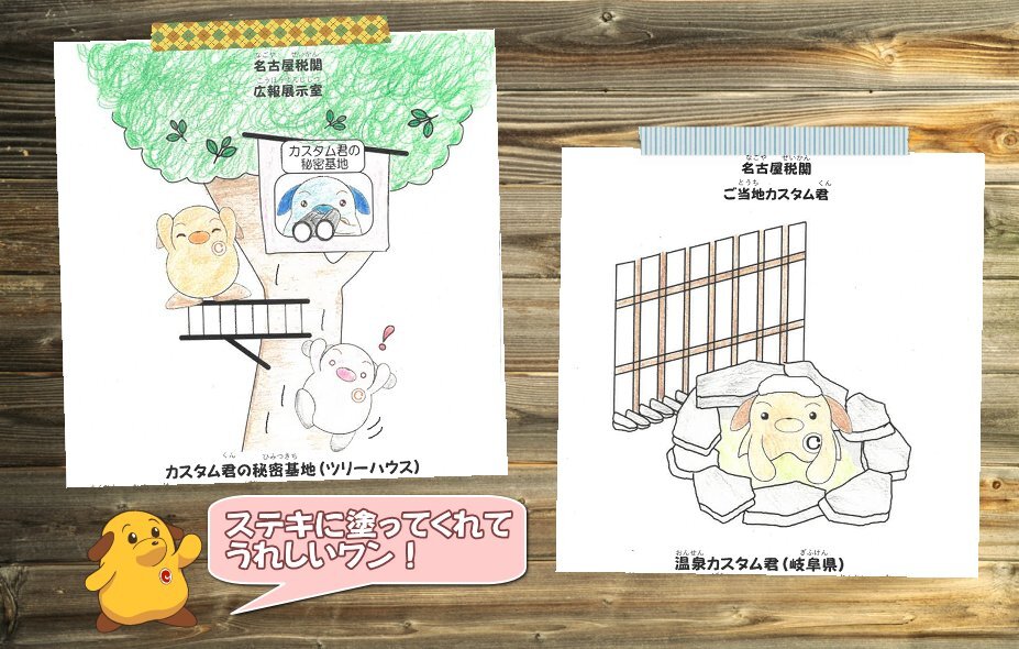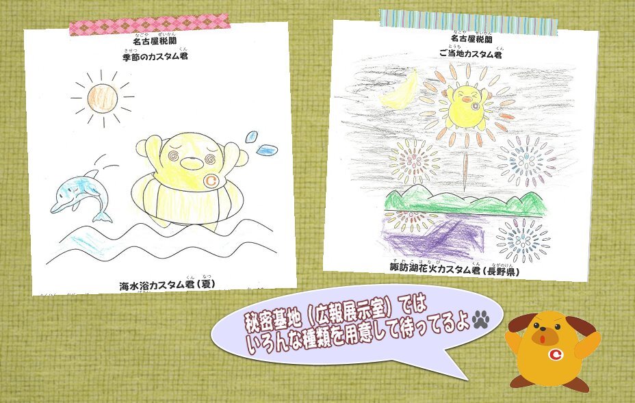 【お知らせ】 #名古屋税関 広報展示室のキッズコーナーでは、ボクのぬりえができるワン🐾ここでみんなの作品を紹介するよ!ぬりえにはいろいろな種類のボクがいるから広報展示室に見にきてほしいワン! #税関 #ぬりえ #広報 #展示室 #キッズコーナー #カスタム君 pic.x.com/precCBUczf