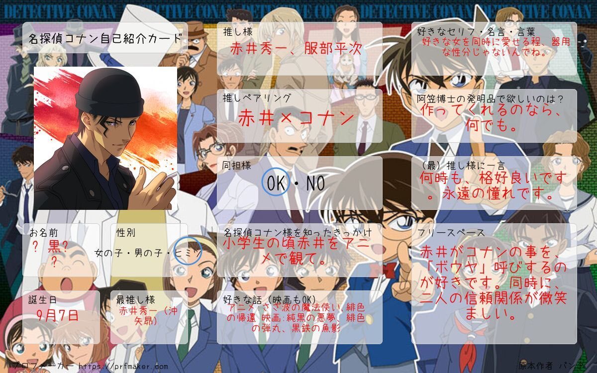 ⚠️新しく作り直しました! マイペースに推し活中。 文字書きメイン(支部に載せてます)ですが、聖地巡礼も行きます✨ 楽しくお話して下さるお友達を探してます!☺ ♻️or🫶で気になる方をお迎えに参ります🙇‍♂️ #コナクラ自己紹介カード #コナクラさんと繋がりたい #名探偵コナン好きさんと繋がりたい pic.x.com/mkgd23SO5n