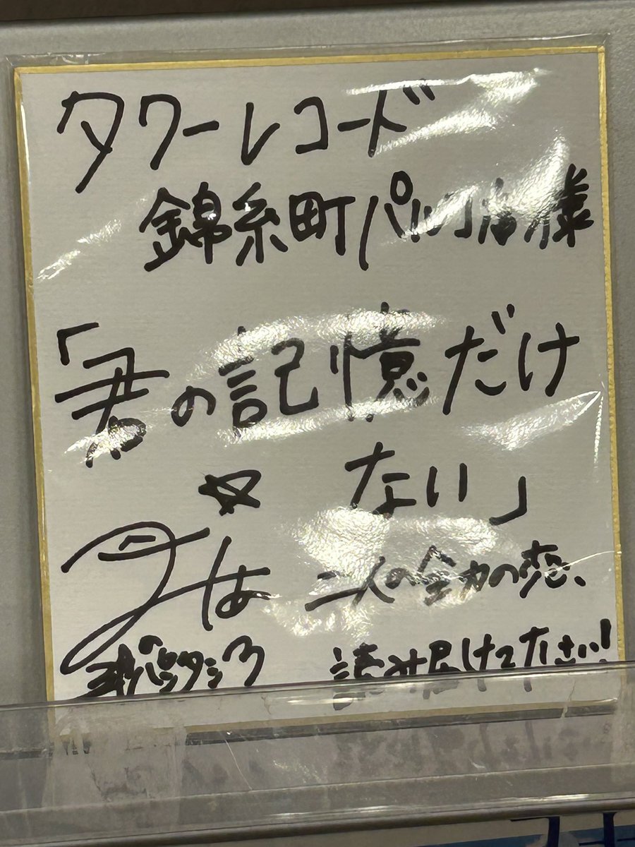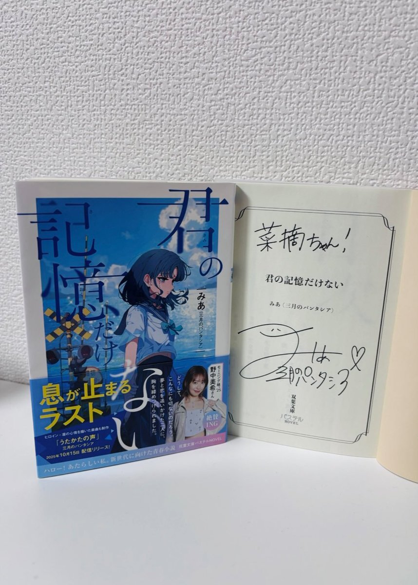 サイン会に行ってきました! まさかの質問選ばれてびっくりwみあさんやふぁんぱしさん達とお話できて楽しかったです!元々仕事で行けないと思ってたけど、急遽行けるようになってすごく嬉しかった😭 邂逅してくださった方ありがとうございました! #君の記憶だけない pic.x.com/imKaGt2hh0