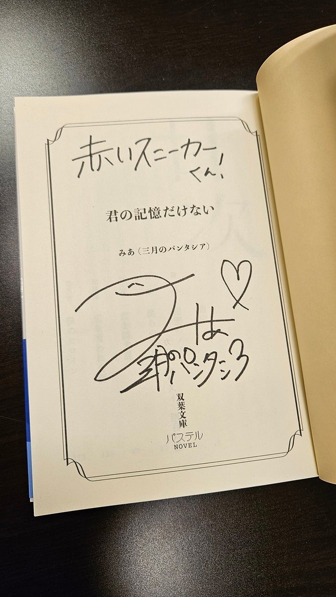 トークショー&サイン会参加してきました!!初サイン、嬉し🥳緊張して話したいこと全部飛んでしまい、結果ど田舎からどんどこ出張ってきたことを語るだけの人になってしまったけど行けてよかった!🐼小説めっちゃ引き込まれて一気に読みましたって言いたかった〜〜😭 #君の記憶だけない pic.x.com/ciu6UW0vXt