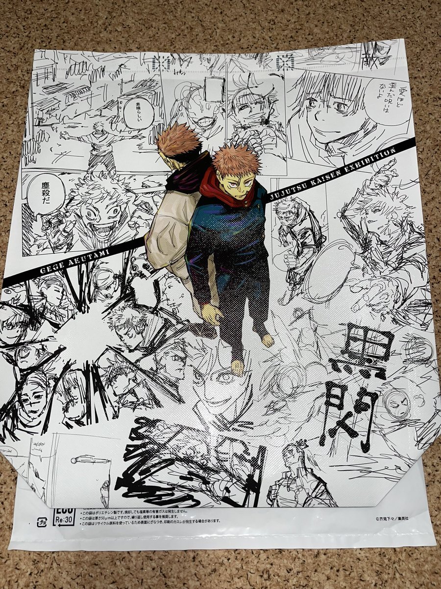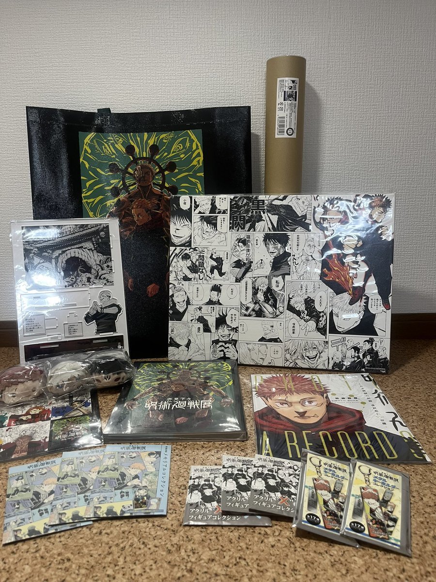 展示会自体は会期終了間近で凄く混雑してたんだけど、グッズ売場は空いてて並ぶ事も無くて良かったです。売り切れグッズもなく、転売屋らしき人も見当たらず、ストレスフリーで買い物が出来たのも良かった。チケ代と合わせて1万以内と決めて行ったけど普通にオーバーしてしまいました😅💦 #呪術廻戦展 pic.x.com/Yevzl6bM1C