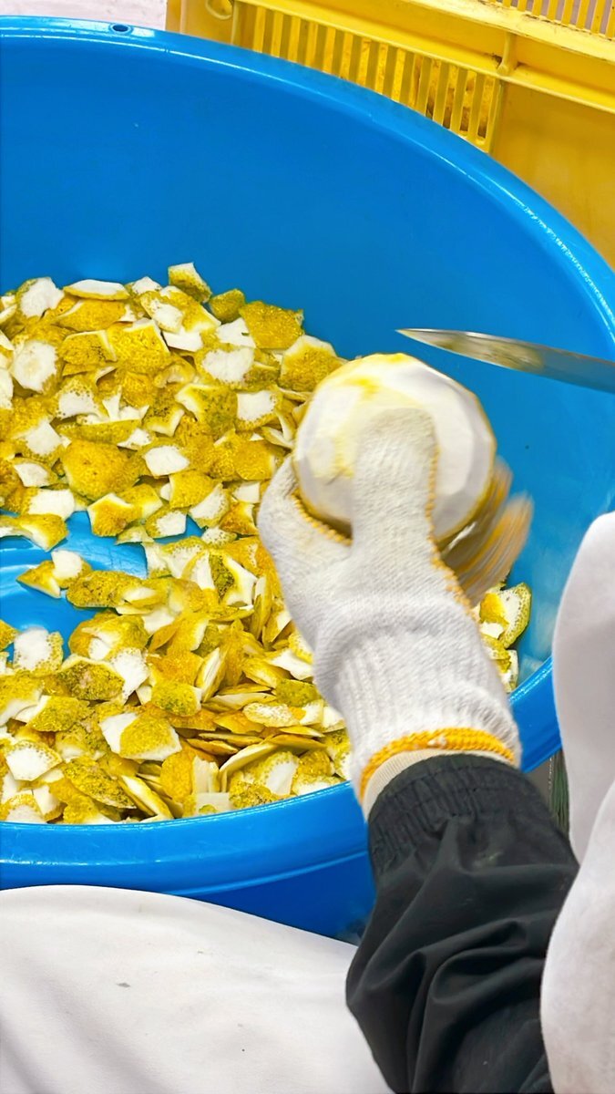 和歌山県産の柚 『柚もなか』に使用する柚は、 手作業で皮剥きをしています😊 柚もなかには柚皮を使うので、実の部分が残っちゃいます。ポン酢作りやゆず湯などにご利用いただけますので、ご入用の方はご自由にお持ち帰りください☺️ #柚の皮剥き #和歌山県産 #柚使用 #ご自由にお持ち帰りください pic.x.com/OZqSa8ZQZ6