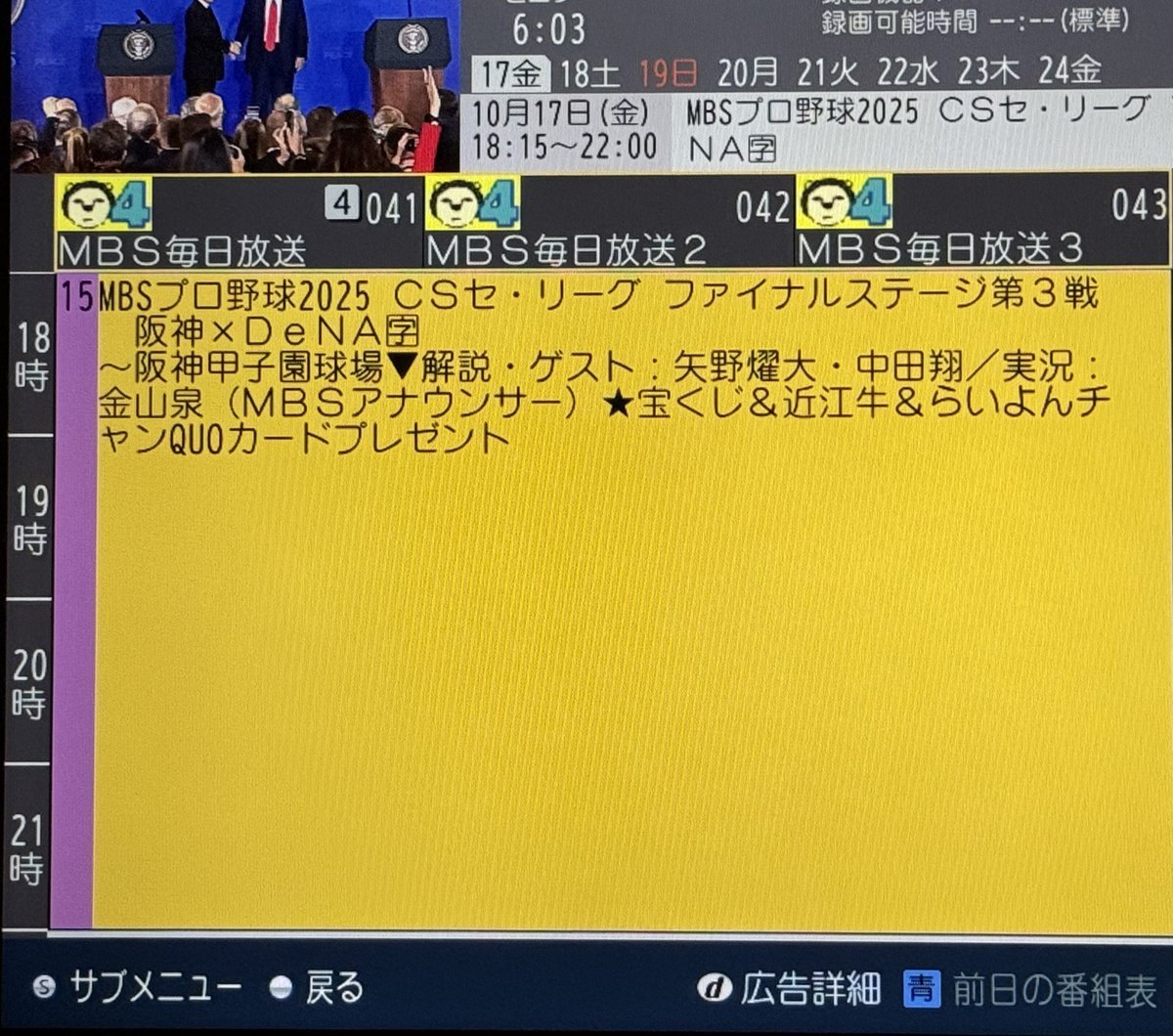 きょう 10月17日 地上波 MBS 18:15 〜 22:00 ← #矢野燿大 #中田翔 きのう の 関テレ x.com/_tomoaki_love_… よか マシやな w #NHKBS1 x.com/_tomoaki_love_… #和田一浩 pic.x.com/AteXhd2wXa