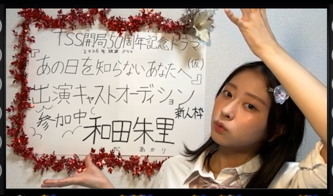TSS開局50周年記念ドラマ 「あの日を知らないあなたへ」のオーディションに参加中 #アクターズスクール広島 所属 #和田朱里 4人兄弟の長女 ダンスが得意 シール集めやホラー映画好き ☕飲めません!すぐに寝ちゃいます😴 どうぞ応援よろしくお願いします。 #あかりを灯し隊 #あかりが灯るお部屋 🕯 pic.x.com/0iRUh7C9ee x.com/wadasan_akari/…