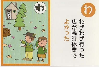 おはようございます。 1044目のよかった探しです。 本日もカルタ(大人版)に書かれた 決してハッピーではない現実に よかったを考えてみましょう! わ わざわざ行った店が臨時休業でよかった なんでですか? #和田裕美 #人生よかったカルタ #陽転思考 pic.x.com/WUbYGGfRVb