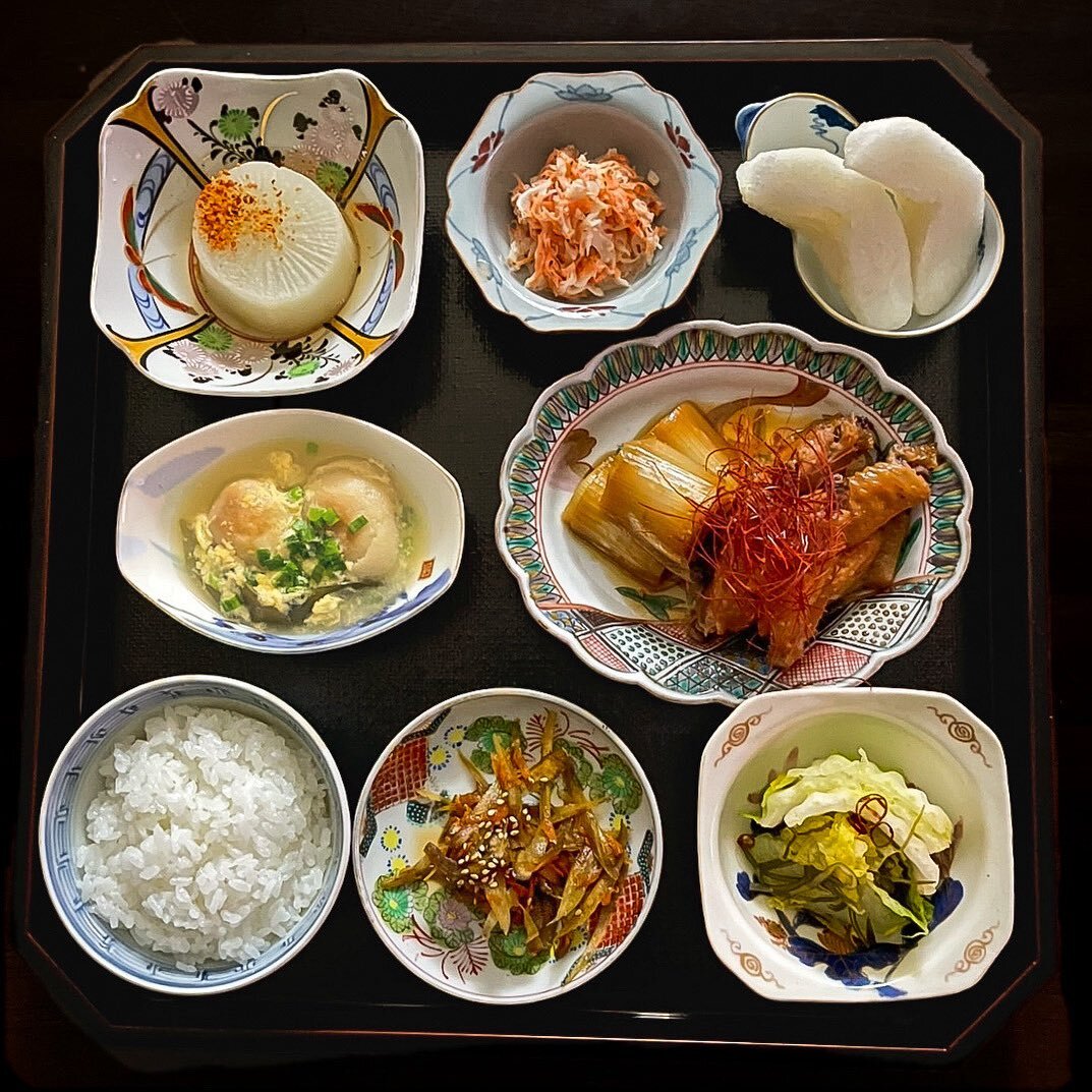 大根、白菜が美味しい季節に♪ ・白米ごはん ・鶏手羽中とリーキの旨煮 ・ふろふき大根 ・白ネギと餅麩の卵とじ ・人参入りコールスロー ・きんぴら ・柚子白菜 ・果物:梨(新興) #食パラダイス鳥取県 #田舎の暮らし #田舎の食卓 #おうちごはん部 #おうちごはん #和食器 #和食 #地元食材 pic.x.com/xkXUqpDgUS