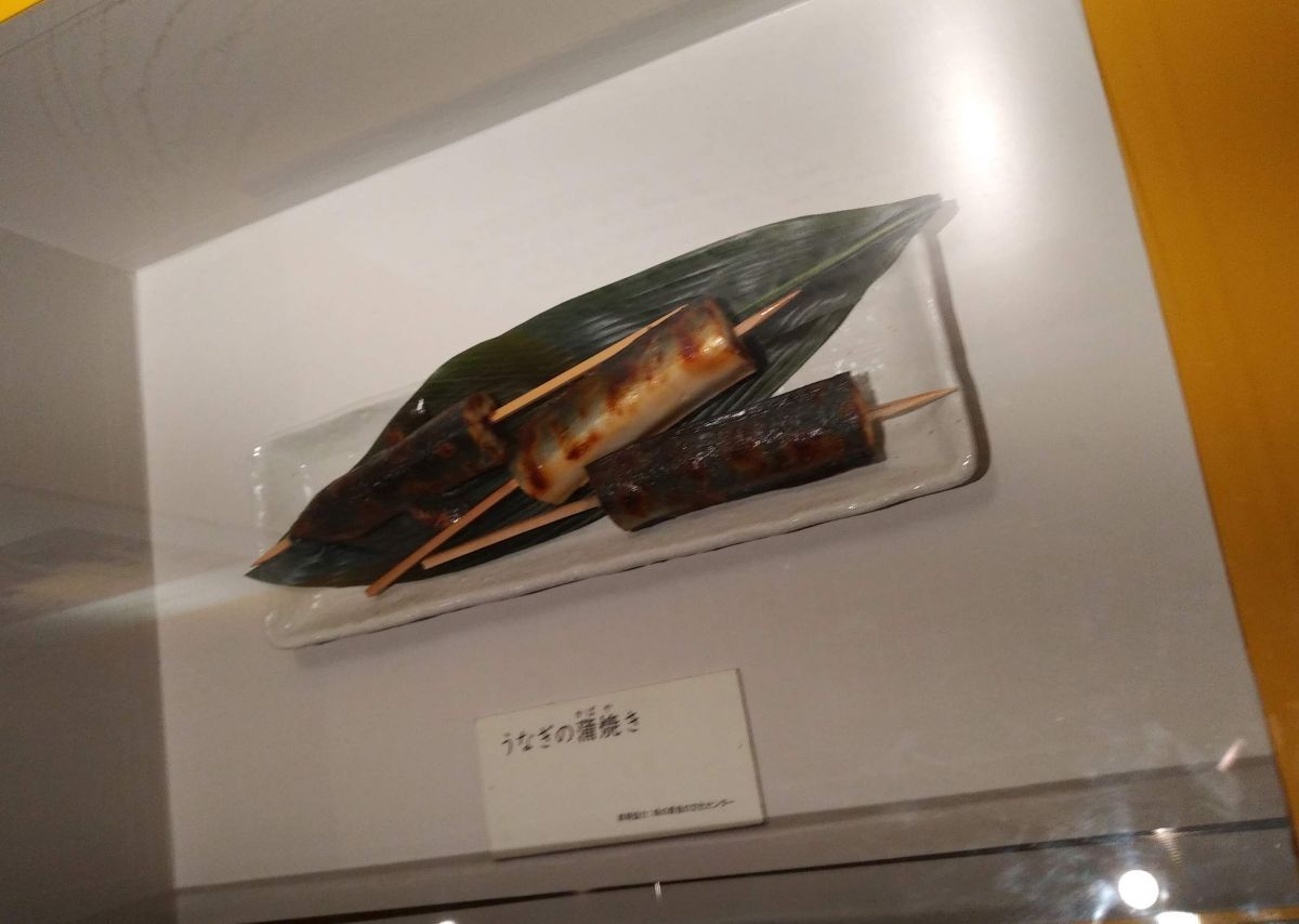 #国立科学博物館 #和食展 江戸時代の料理のコーナーにあったうなぎの蒲焼き。 見返したら開いてなかった。 最初は蒲(ガマ)の穂に似ていたから蒲焼きという説のものだったのね。 ガマの穂はきりたんぽそっくりで、これもガマの短い穂(たんぽ)からの名前。 蒲焼きときりたんぽは語源が同じ! pic.x.com/RWBJIyIU9d