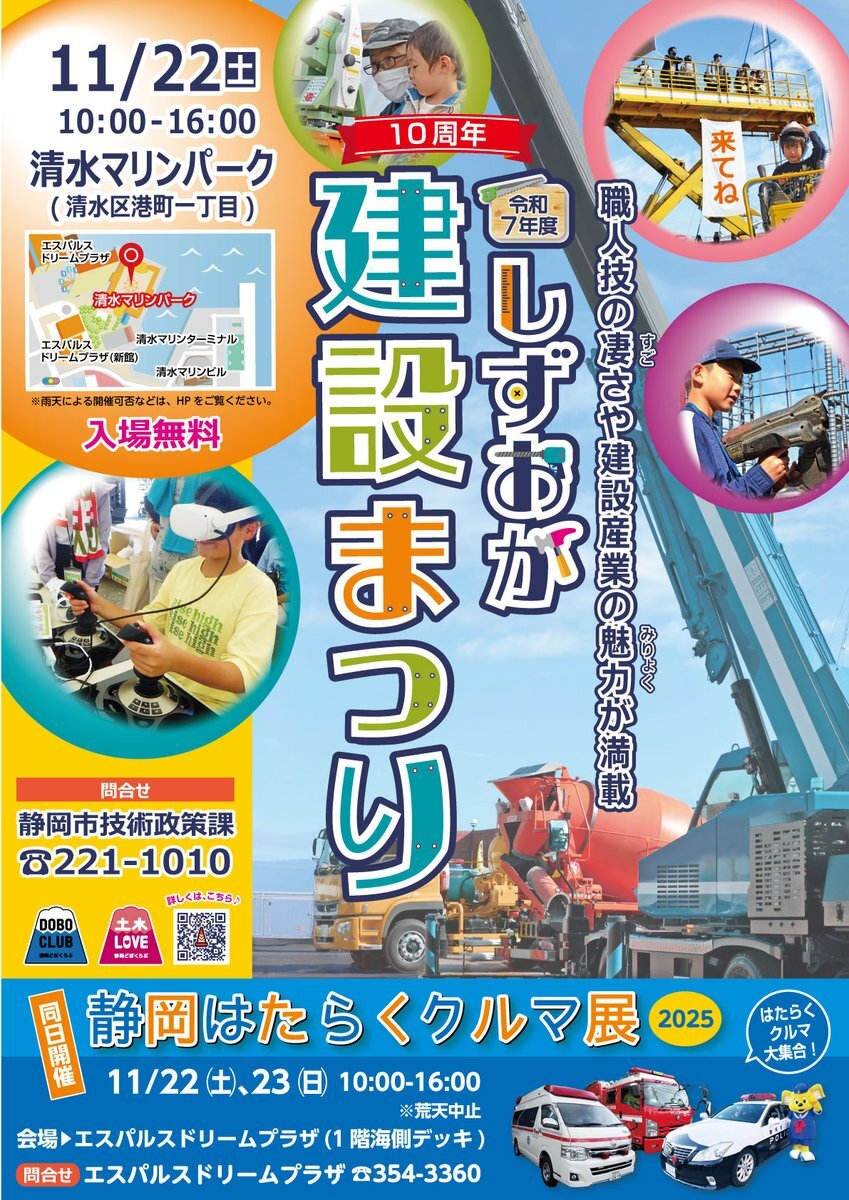 登呂博が出展する #和食展 のおとなりは \#しずおか建設まつり🚧/ 11/22㈯ 10:00~16:00 クレーン車や高所作業車などの体験乗車、ARやVR体験、鉄筋工や配筋工などの職業体験など、子どもから大人まで楽しめるんだって! 🏗️ 詳細はこちら↓ city.shizuoka.lg.jp/s6295/s012382.… #静岡市 #職人 pic.x.com/3el38wyNi0