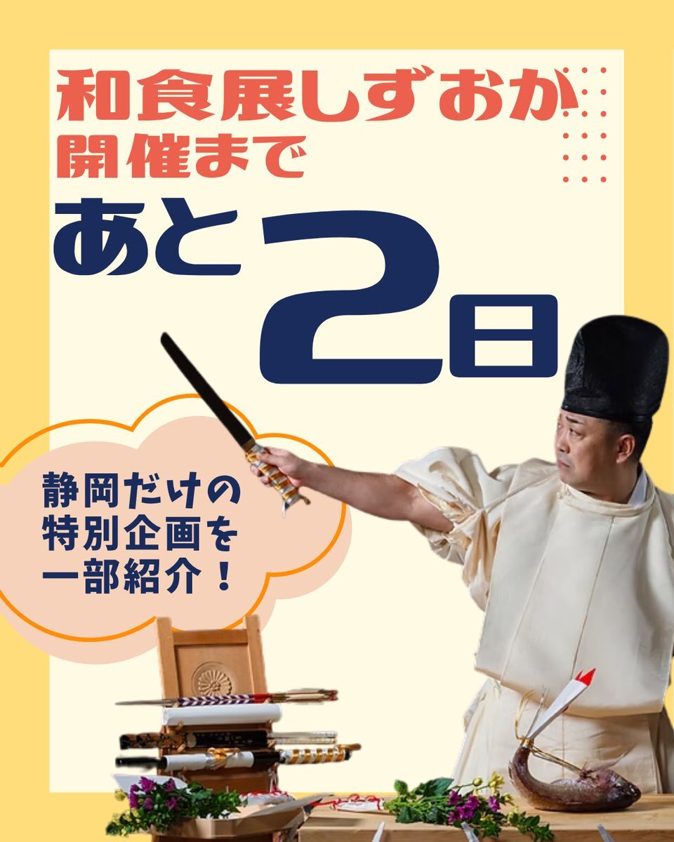 / 📢本日から #和食展 #静岡会場 開幕! \ 本日より開幕🎉 全国を巡った「#和食展」ついにフィナーレ✨ 最後の地は“静岡”です🍵 日本各地を旅してきた常設展示では、 出汁・器・食文化・四季の味わいなど、 和食の知恵と美しさを体感できます。 さらに静岡限定の特別企画も開催! 🔪 庖丁式の実演 pic.x.com/X8c85KPsdA