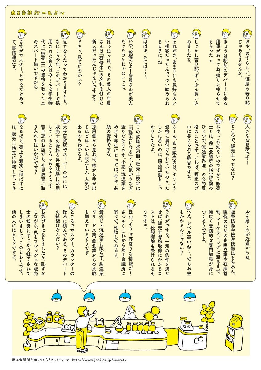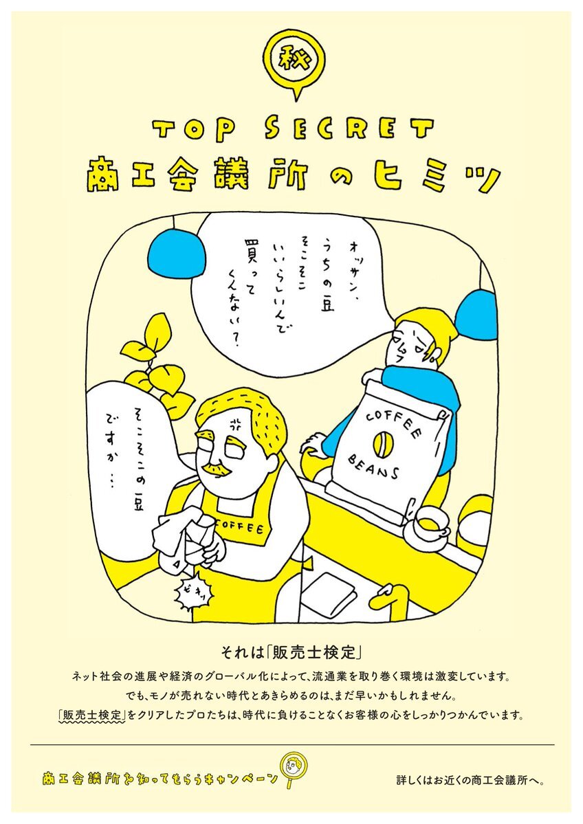2010年の商工会議所を知ってもらうキャンペーン「商工会議所のヒミツ」の「販売士検定編」です。ビジュアルは寄藤文平さん。喫茶店のマスター、いい味出してますね。 #商工会議所 #販売士 #リテールマーケティング pic.x.com/wcLkgYFt8u