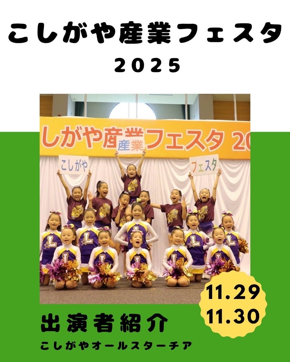 ぜひ一緒に盛り上がりましょう! こしがやオールスターチアは 11/29(土)12:50ごろより 第一体育室 館内ステージにて! #越谷市 #商工会議所 #青年部 #個人事業主 #起業支援 #産業フェスタ #越谷産業フェスタ2025 pic.x.com/yFuYVTpDwZ