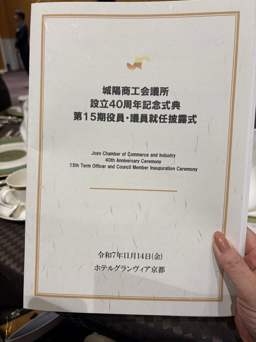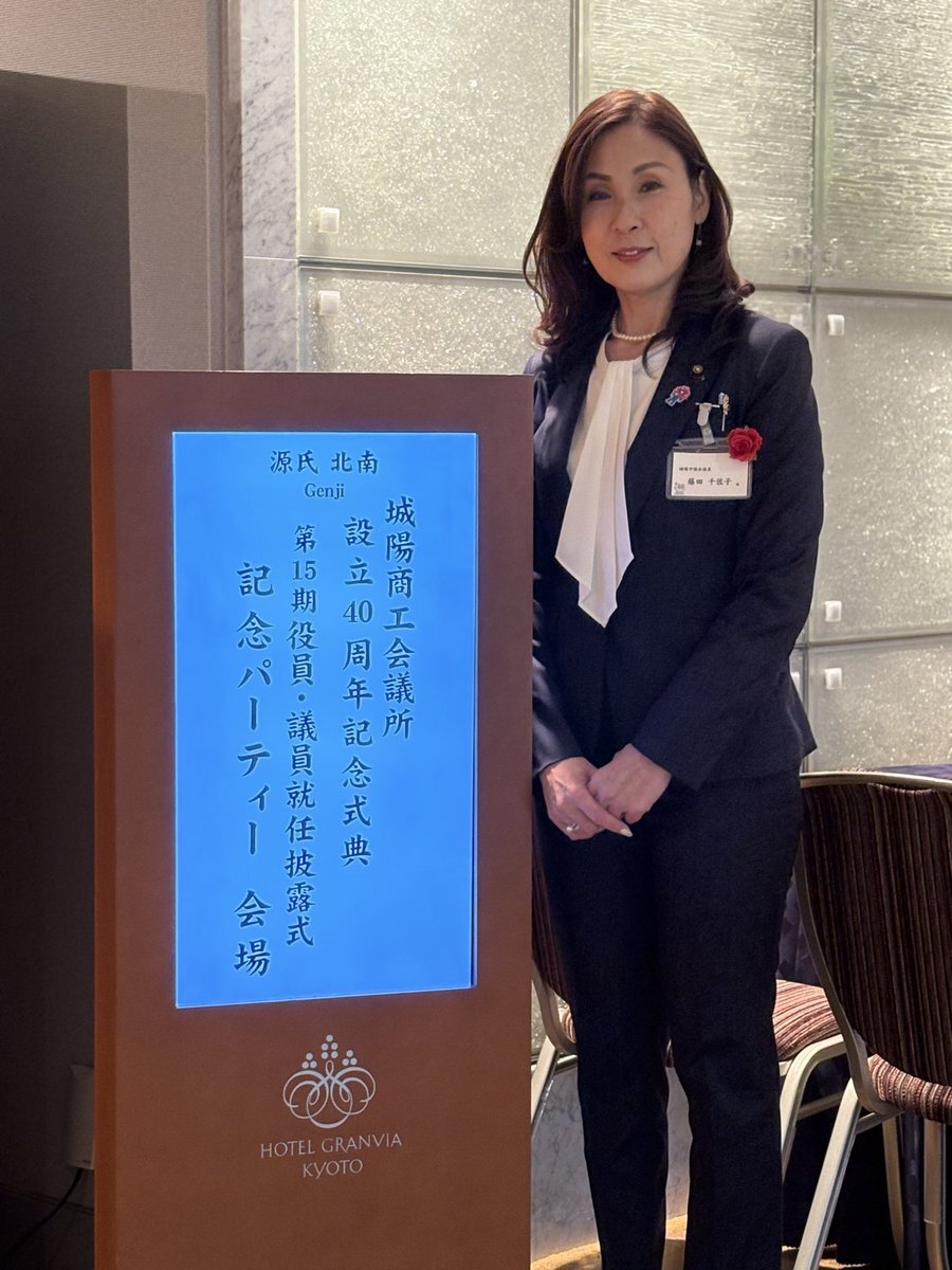 11/14日 【城陽商工会議所 設立40周年記念式典 第15期 役員・議員就任披露式 記念パーティー🎉】 来賓にて出席して参りました😊 設立40周年、誠におめでとうございます㊗️今後ますますのご発展を心よりお祈りいたします☀️ #日本維新の会 #城陽市議会議員 #藤田チサコ #商工会議所 pic.x.com/80hSWH9eXh