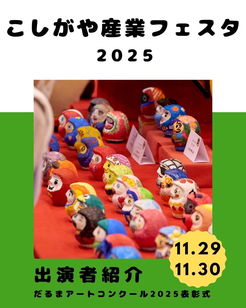 越谷だるまアートコンクールの表彰式は 11/29(土)12:25ごろより 第一体育室 館内ステージにて! #越谷市 #商工会議所 #青年部 #個人事業主 #起業支援 #産業フェスタ #越谷産業フェスタ2025 pic.x.com/Ol65j11Ki2