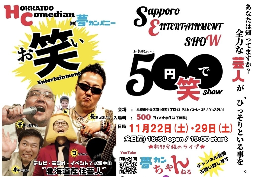 【11月ライブ情報✨】#リポスト ここで共に笑おうよ🤗 500円で愉快なアットホームライブ🤣ここにしかない笑いと #芸人😆 都合の良い日に来て下さい❗ #カフェ もあり楽しいひと時を🤗 #北海道 #札幌 #お笑い #新千歳空港 #天気 #マルセイコーヒー #長渕っぽい人 #商工会議所 #イベント #雪まつり # pic.x.com/lOVrFfHsks
