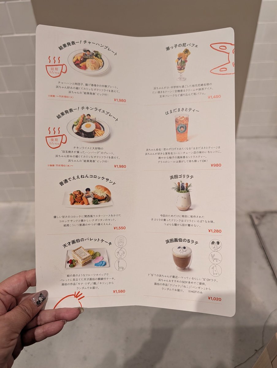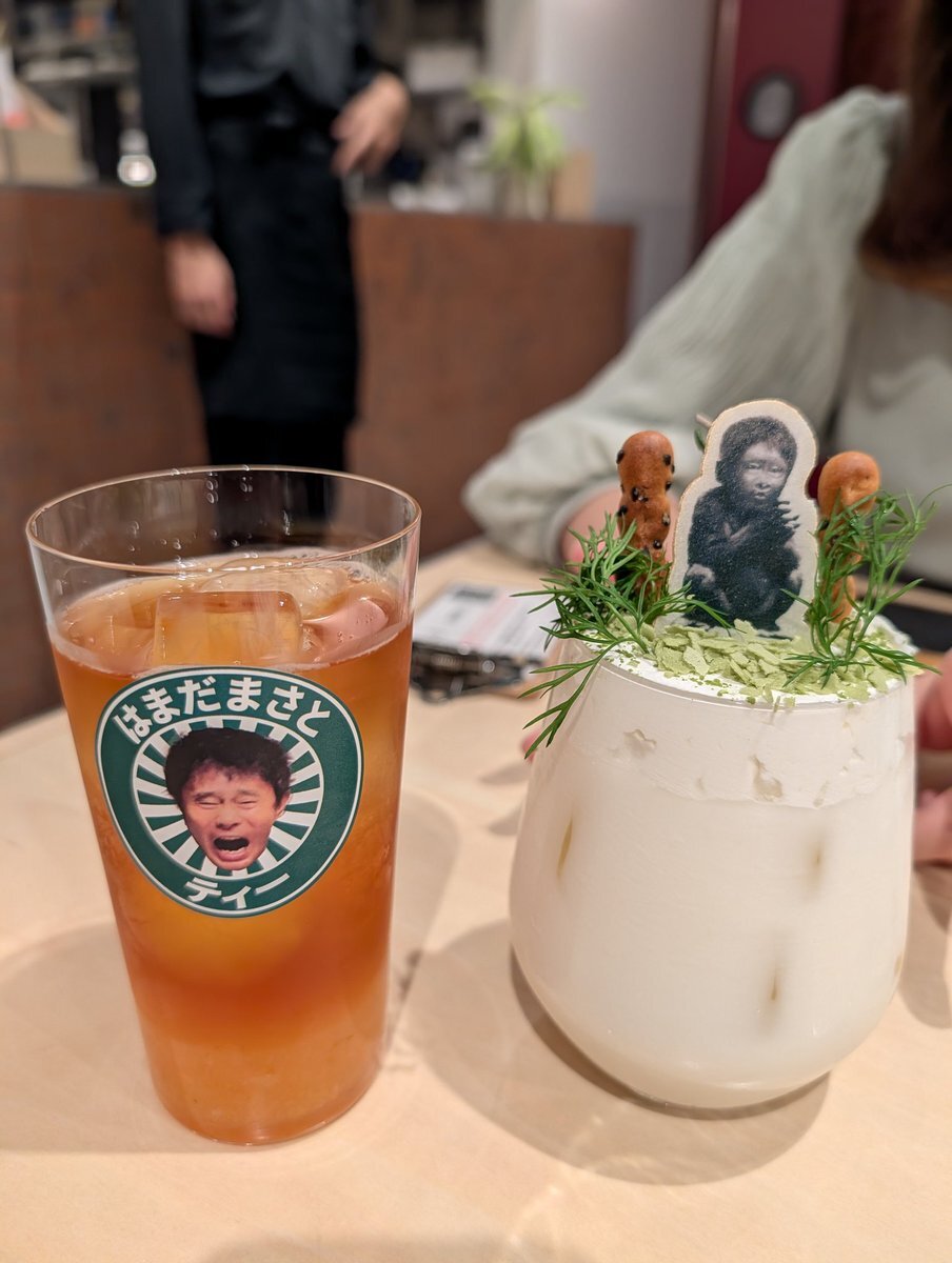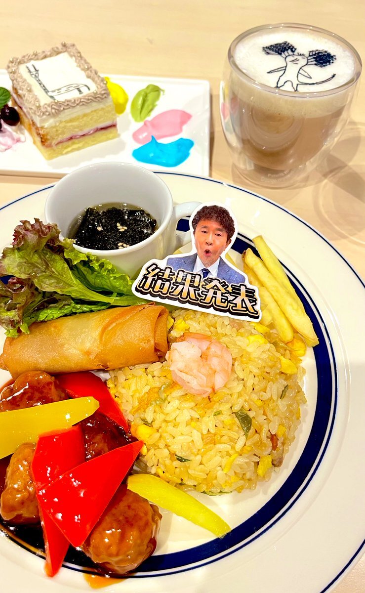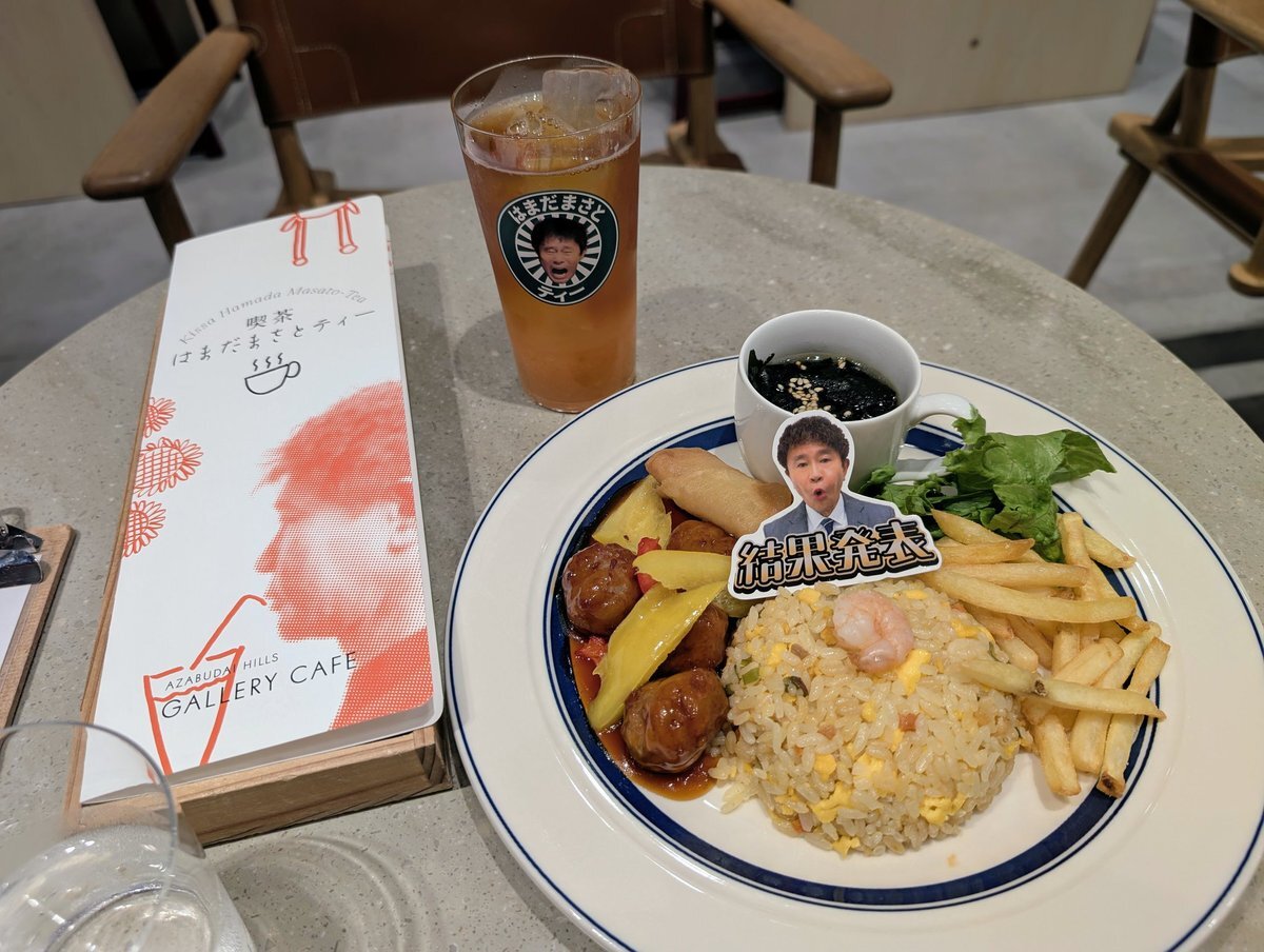 はまだまさとティーも、浜田ゴリラテも、そのネーミングで美味しさ増し増し😆 BGMも良き🫶チキンライスはやっぱり名曲やな✨️ #浜田雅功展 #空を横切る飛行雲 #喫茶はまだまさとティー pic.x.com/MmBapOI9lW