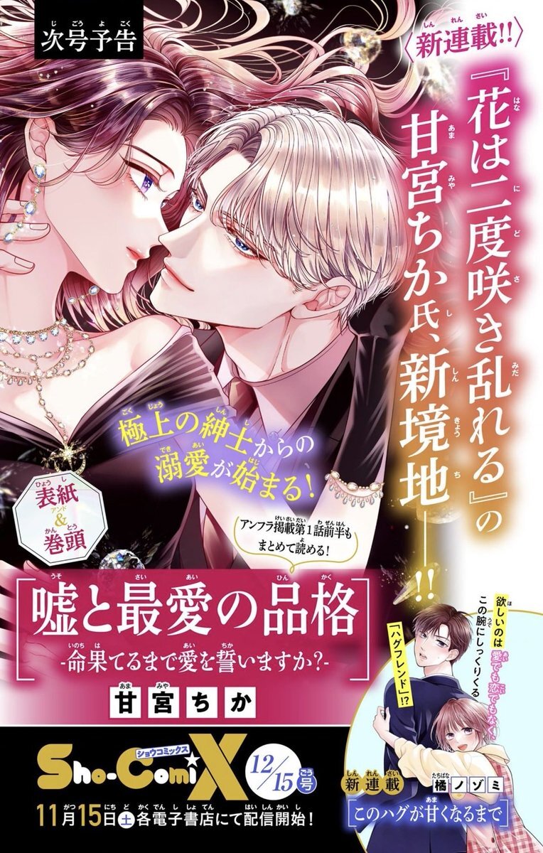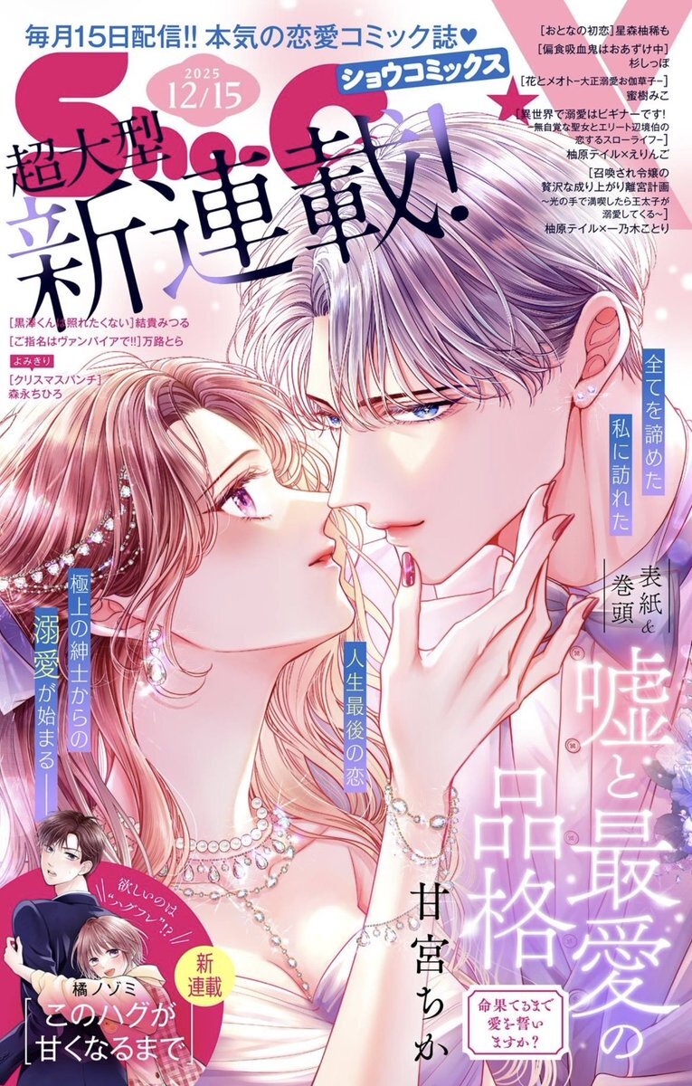 ˗ˋˏ Sho-ComiX 12/15号は明日発売 ˎˊ˗ 見逃せないW新連載🤍 『#嘘と最愛の品格 -命果てるまで愛を誓いますか?-』 #甘宮ちか 先生💎 表紙&巻頭カラーで登場! 『#このハグが甘くなるまで』 #橘ノゾミ 先生🫧 お楽しみに🙌🏻💫 #shocomi #マンガが読めるハッシュタグ #少女漫画 pic.x.com/UZ3f2byK95