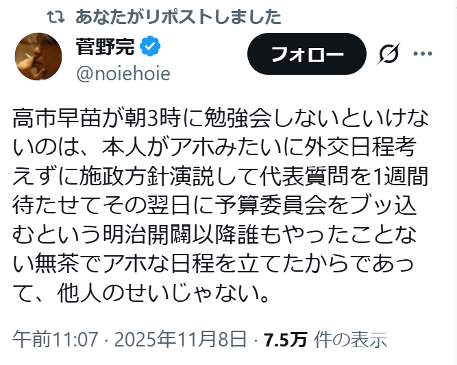 高市早苗氏はたしかに「私自身、ワークライフバランスという言葉を捨てます」と発言した。 そして一部メディアと一部政党はその高市発言を舌鋒鋭く批判した。 ところが、現実に高市総理に早朝3時からの仕事を強いていたのが特定野党だったとしたら、シャレにしても笑えない。