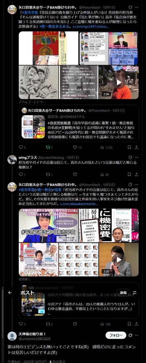 返信先:@pride_to_jpn#噓つきは統一教会の始まり☟(過去の悪行三昧を無視し)高市が飯を食おうが屁をしようが大絶賛..無数の権力犯罪を行う安倍スガ岸田政権が長年続いてしまったのは,この様な自民党世論工作員を大量に用い世論変造してたから #高市早苗は統一教会 x.com/mikeusu2/statu… x.com/pride_to_jpn/s… pic.x.com/c6bevpQGav