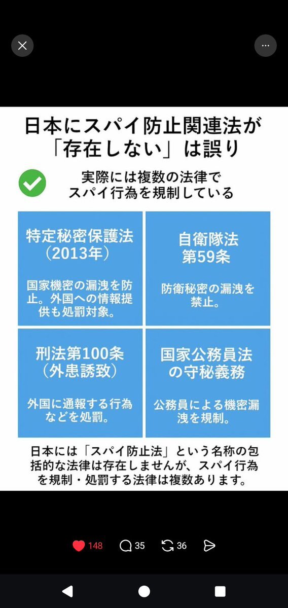 コレできるの高市さんだけ✊✊✊ #スパイ防止法の制定を 参政・神谷代表 「外国からの工作をはねのけるためにもスパイ防止法の制定は急務だ」 高市総理 「スパイ防止法の制定は私自身が総裁選挙で訴えていたこと。外国勢力から日本を守っていく対応を検討していきたい」