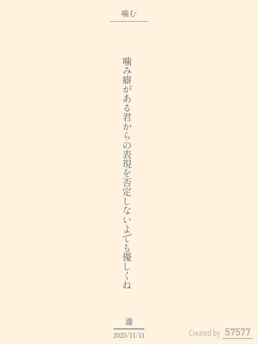 #毎日文学 #短歌 #噛むをテーマに作品をつくる 噛み癖がある君からの表現を否定しないよでも優しくね / 瀧 pic.x.com/EytMPpcZ8d x.com/tankazine/stat…