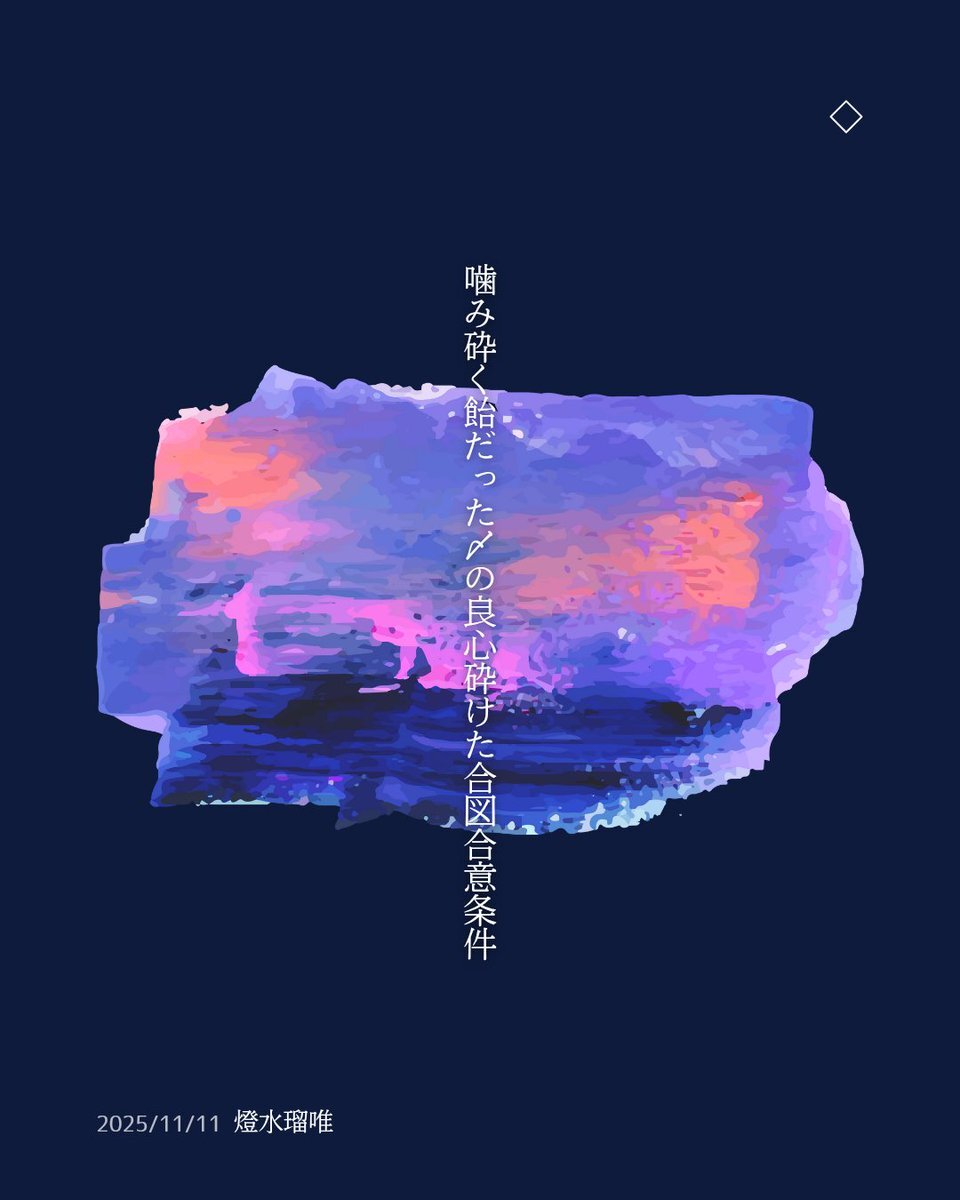 噛み砕く飴だった〆の良心砕けた合図合意条件 テーマ「噛む」 #毎日文学 #短歌 #噛むをテーマに作品をつくる pic.x.com/0synI41xjb x.com/tankazine/stat…