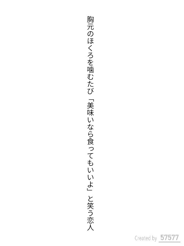 胸元のほくろを噛むたび「美味いなら食ってもいいよ」と笑う恋人 / たかはしイチコ (過去作) #毎日文学 #短歌 #噛むをテーマに作品をつくる pic.x.com/emVTjwyz1S x.com/tankazine/stat…