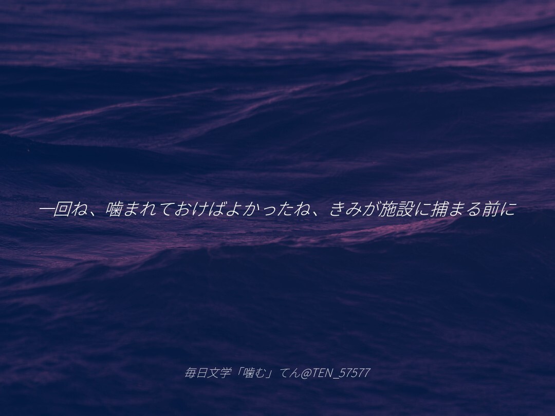 一回ね、噛まれておけばよかったね、きみが施設に捕まる前に / てん #毎日文学 #短歌 #噛むをテーマに作品をつくる pic.x.com/ppFGOWubuF x.com/tankazine/stat…
