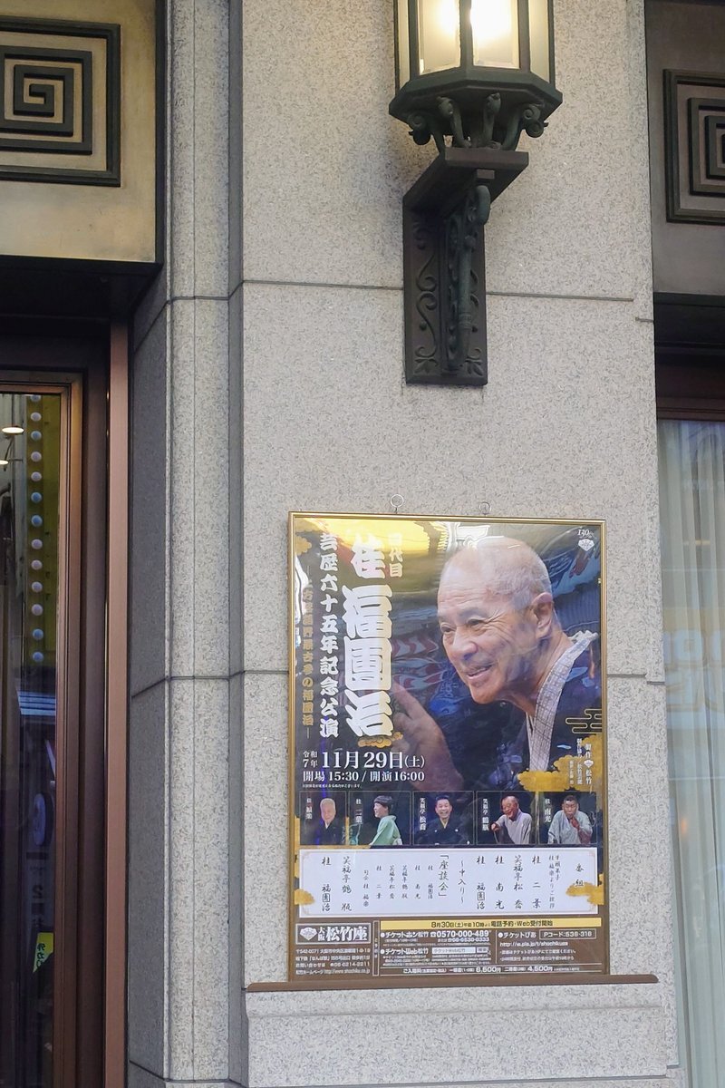 お出かけ日和の晩秋サタデーは今月二度目の松竹座へ♪♪ワクワクしながら到着すると入場口には老若男女がワンサカ押し寄せドえらい賑わい!!そして高まるお祝い気分\(^o^)/ #四代目桂福團治 #芸歴六十五年記念公演 #桂南光 #笑福亭鶴瓶 #笑福亭松喬 #桂二葉 #桂福楽 #大阪松竹座 pic.x.com/lKVbL5mXe4