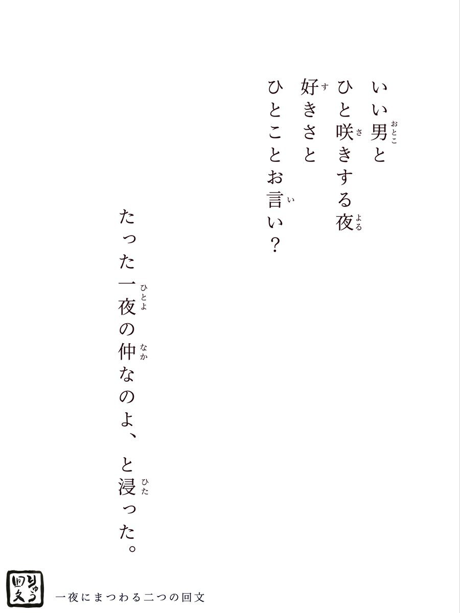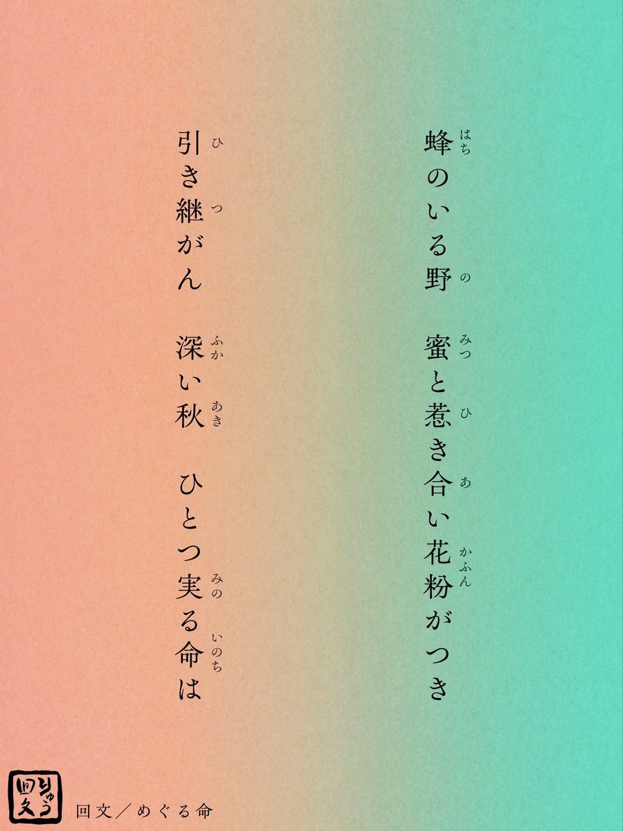 【🍂note 投稿しました!】 投稿13回目。今回のテーマは「秋の恋模様」この恋の行く末はいかに… 私自身の意地の悪さが少しだけにじみ出た記事となっております。秋の夜長にぜひ。 #回文 #回文画像 note.com/ryu_kaibun/n/n…