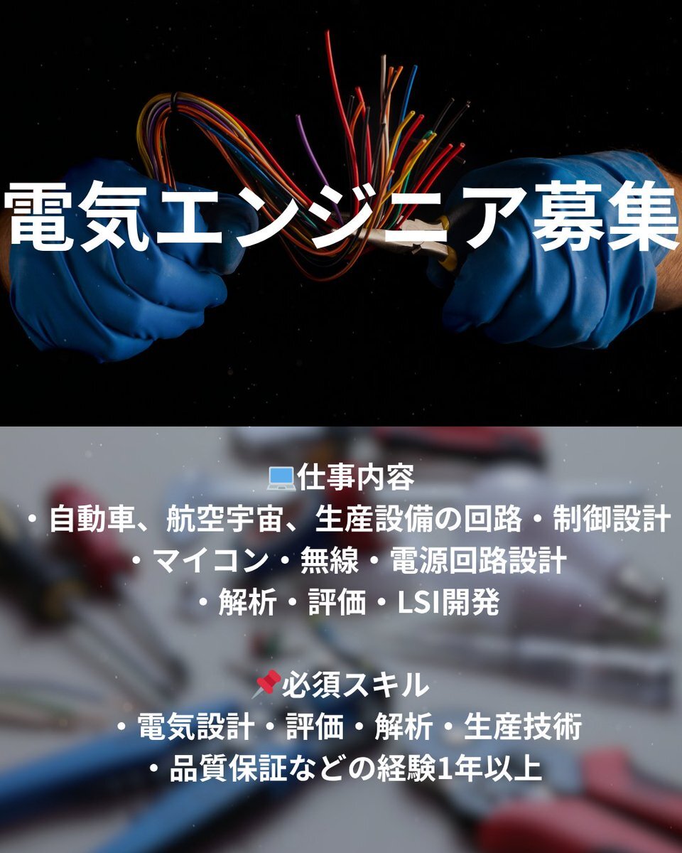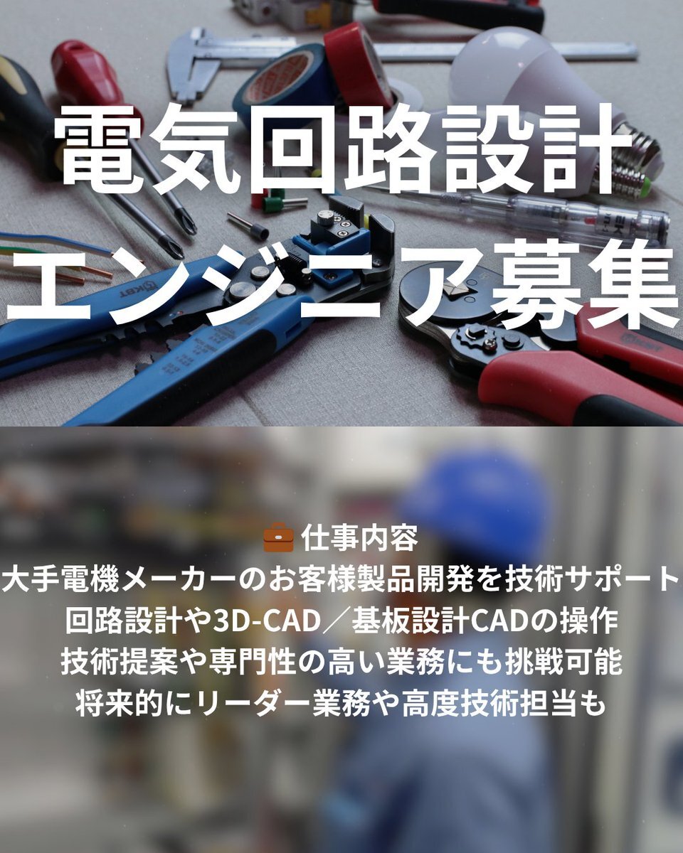 ✨電気回路設計エンジニア募集✨ 大手電機メーカー製品開発サポート💡回路設計・3D-CAD経験者歓迎📈詳細→ x.gd/foZ6e #求人 #エンジニア募集 #回路設計 #キャリアアップ pic.x.com/ydIks3alQ7