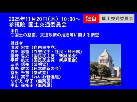 #国会中継 #国会を見よう 2025/11/20 参議院 10:00~ 内閣委員会、総務委員会 法務委員会、外交防衛委員会 財政金融委員会、文教科学委員会 厚生労働委員会、農林水産委員会 経済産業委員会、国土交通委員会 webtv.sangiin.go.jp/webtv/index.php