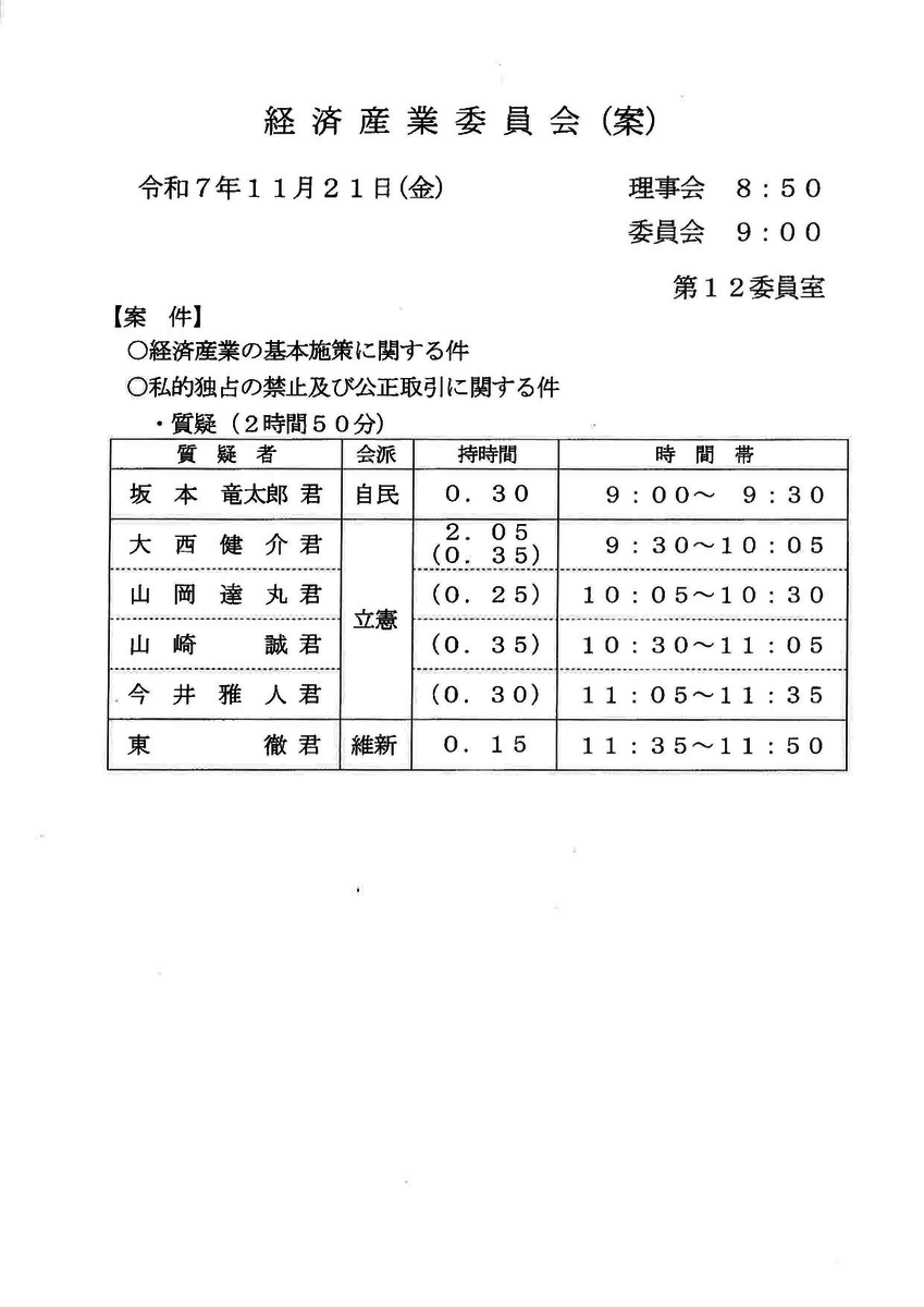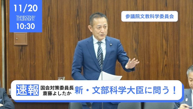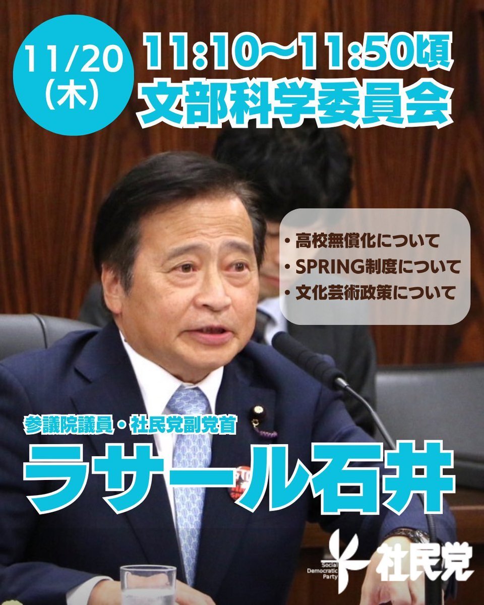 #国会を見よう 7⃣ 11月20日(木) 参議院 #立憲民主・社民・無所属 【文教科学委員会】熊谷裕人委員長 10:30斉藤よしたか 11:10ラサール石井 【農林水産委員会】10:35石垣のりこ 11:10徳永エリ 【経済産業委員会】10:35古賀ゆきひと 11:10村田きょうこ #国会中継 #立憲民主党 webtv.sangiin.go.jp/webtv/index.php pic.x.com/JNaFmy2yzB