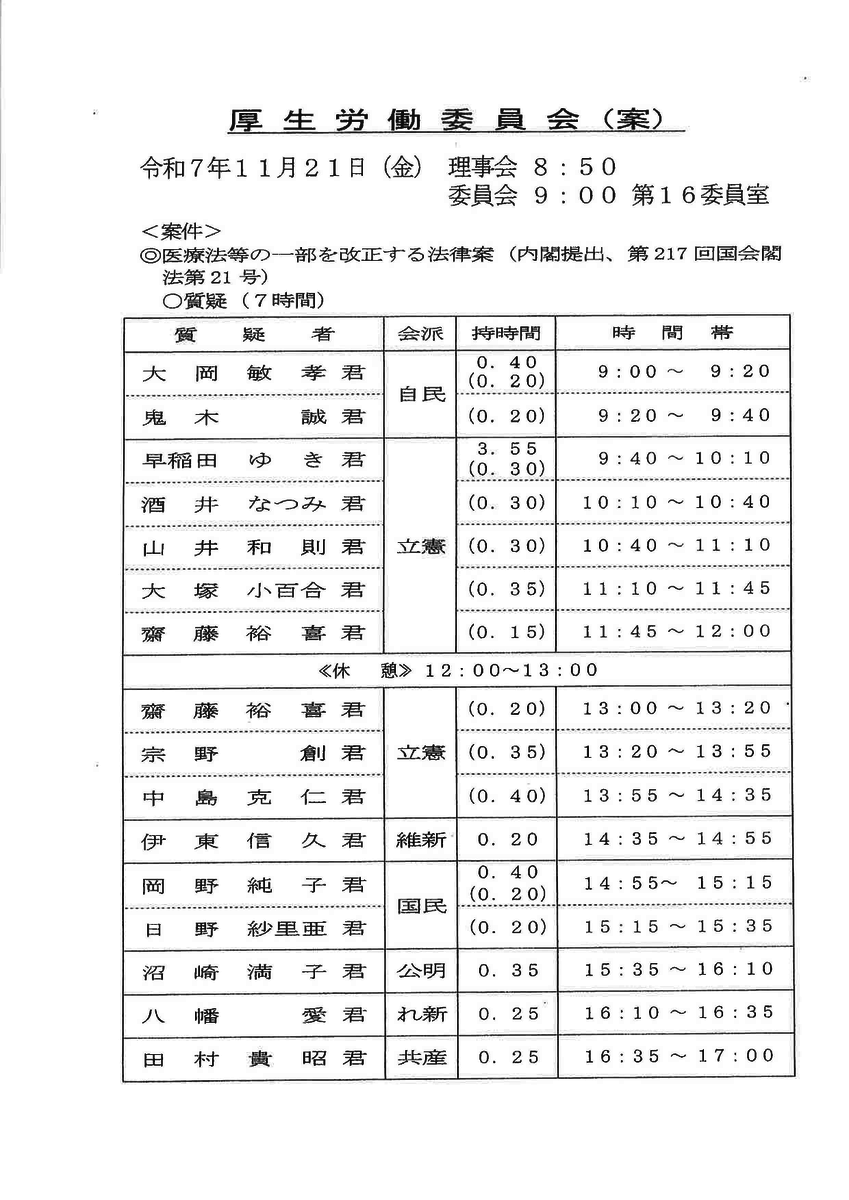 #国会中継 #国会を見よう 2025/11/21 衆議院 中継中 内閣委員会、法務委員会 財務金融委員会、文部科学委員会 厚生労働委員会、経済産業委員会 国土交通委員会 shugiintv.go.jp/jp/