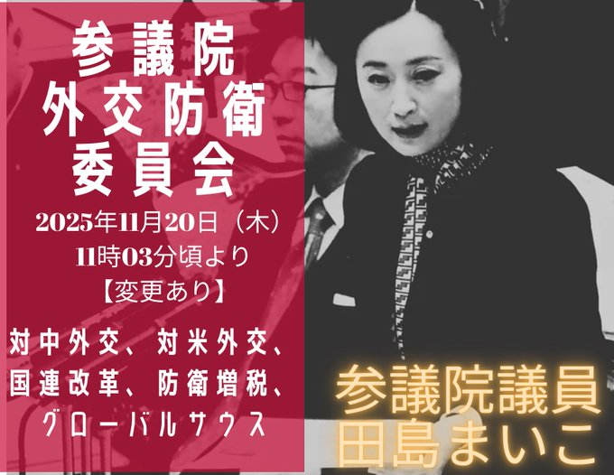 #国会を見よう 6⃣ 11月20日(木) 参議院 #立憲民主・社民・無所属 【法務委員会】10:25打越さくら 【外交防衛委員会】10:27牧山ひろえ 11:03田島まいこ 【総務委員会】10時 吉川さおり委員長 【国土交通委員会】10時 辻元清美委員長 #国会中継 #参議院 #立憲民主党 webtv.sangiin.go.jp/webtv/index.php pic.x.com/MfQoXgEqhj