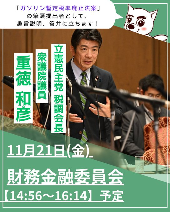 #国会を見よう 2⃣ 11月21日 #立憲民主党・無所属 【財務金融委員会】あくつ幸彦委員長 9:15稲富修二 10 :35大串博志 10:05江田憲司 10:35松尾あきひろ 10:58矢﨑堅太郎 11:21三角創太 11:44川内博史 ガソリン暫定税率廃止法案 趣旨説明14:56 重徳和彦 質疑 15:14 松尾あきひろ youtube.com/watch?v=iM7v7-… pic.x.com/x413hMtuN7