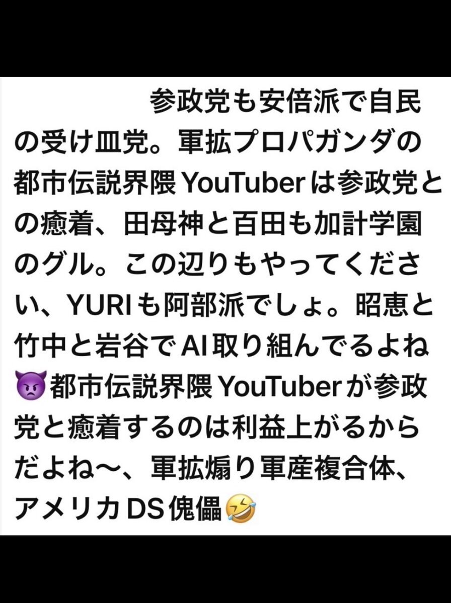 返信先:@yamamototaro0連日、お疲れ様です! 大阪カジノ利権がアメリカから マカオに❗️#山田敏弘ナオキマンショーにて明かす 世界のパワーバランスが 変わって来ました!🇯🇵 #大阪カジノはまともなビジネス出来ないマネロン資金洗浄 #自民を潰すのは今❗️ #高市危険⚠️ #国会機能維持条項絶対反対❗️ #自民維新と公明ぶっ潰せ❗️