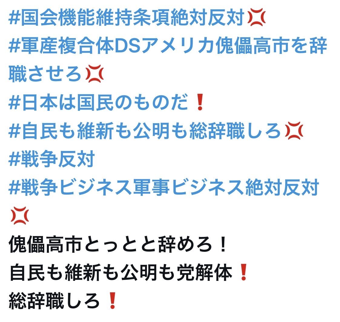 返信先:@kantei#高市危険💢 #高市やめろ💢 #自公維解党 #自公維全員総辞職❗️ #国会機能維持条項絶対反対❗️ 日本は日本国民のもの! 勝手に愚策を進めるな!💢 #自公維いたら日本は終わり👿