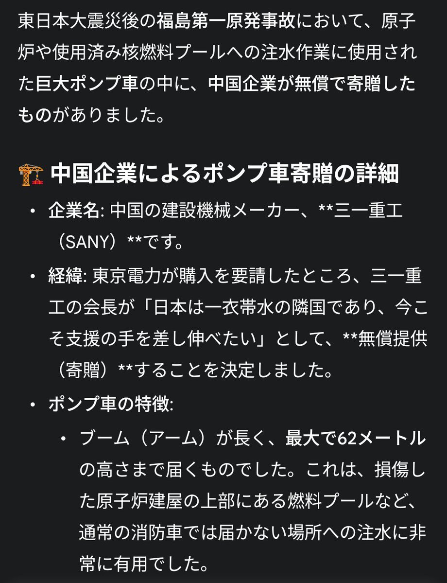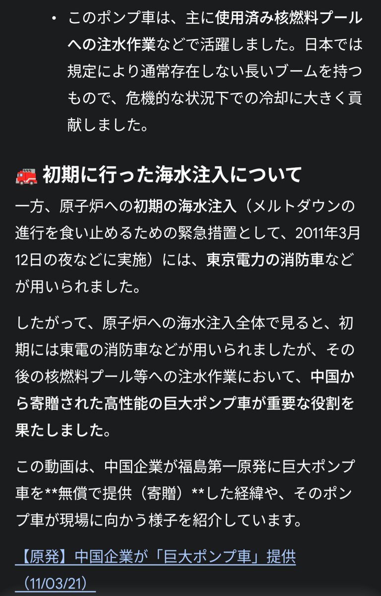 原子炉に海水を注入するポンプ車を中国の企業が無償で提供してくれた事を忘れてはいけない!ポンコツ高市よ! youtu.be/dAo-e-of778?si… #高市は台湾有事答弁の謝罪と撤回を #高市早苗は総理の器に非ず #国民の安全を脅かす高市はやめろ pic.x.com/I5vhxUah00 x.com/BB45_Colorado/…