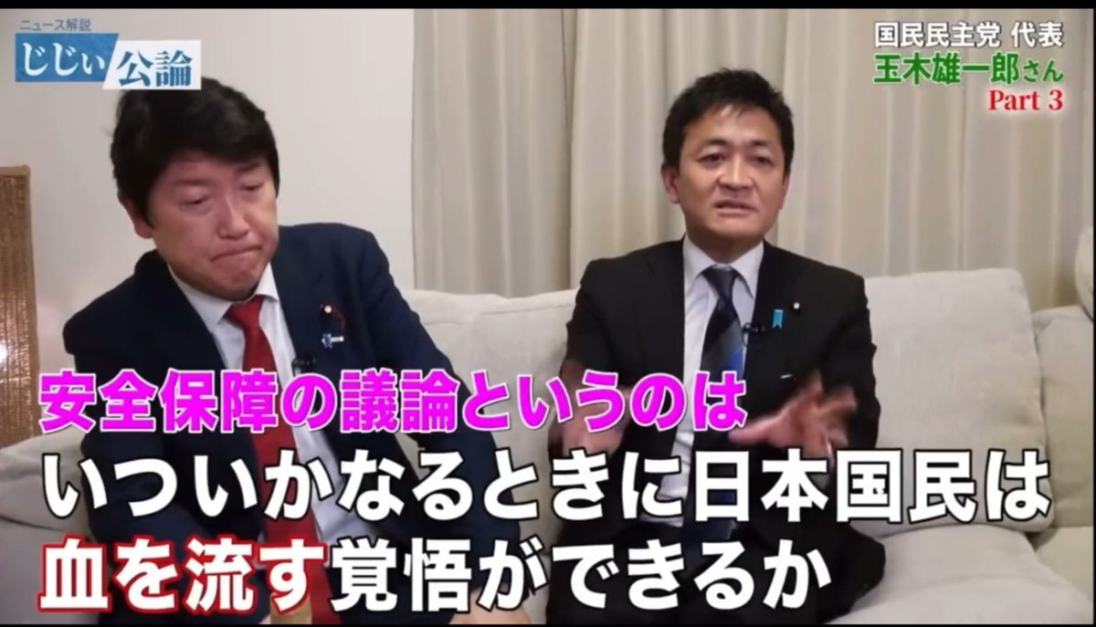 国民民主党 玉木代表 X上の国民民主党の支持者達のことを 【戦士】と呼んで、支持者達を扇動してしまう。 玉木代表「あまりにも玉木さんが不当に批判を受けているから、Xのアカウントを作って参戦してくれる、そんな"戦士"が増えているんですよ!今!!!」 熱狂的な支持者達「そうだ!!!!!」
