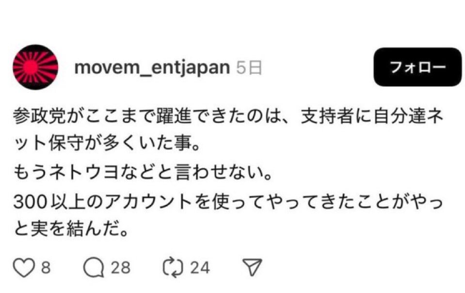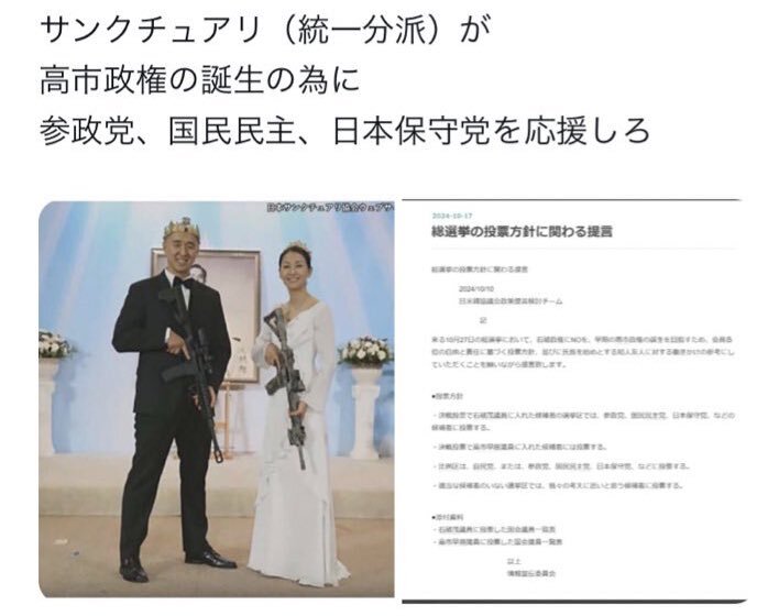 返信先:@notosuzudesu1#参政党は自民党の補完勢力  #自民党は統一教会   #維新は自民党の補完勢力   #国民民主党は自民党の補完勢力  #日本保守党は自民党の補完勢力 れいわ・共産・社民以外=スパイ防止法・憲法改正を叫ぶ党は全て統一教会の手先です。神谷は対アンチ部隊を作ると言った。奴らのネット部隊は存在します pic.x.com/C4pESuE52t