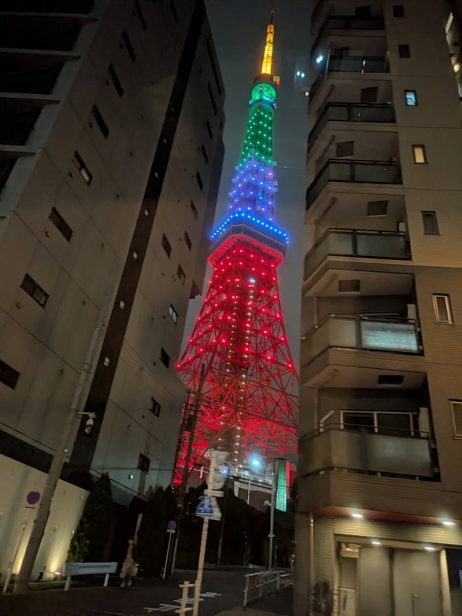 今日帰り道東京タワーの近く通ったんだけど、すごい色だった! イタリアの国旗カラーらしいよ! #東京タワー #jjモデルオーディション2026 #国民的彼氏 #マシェバラ pic.x.com/usskYweZKF
