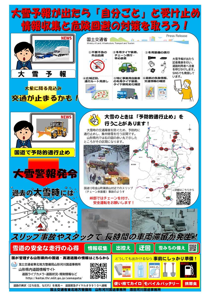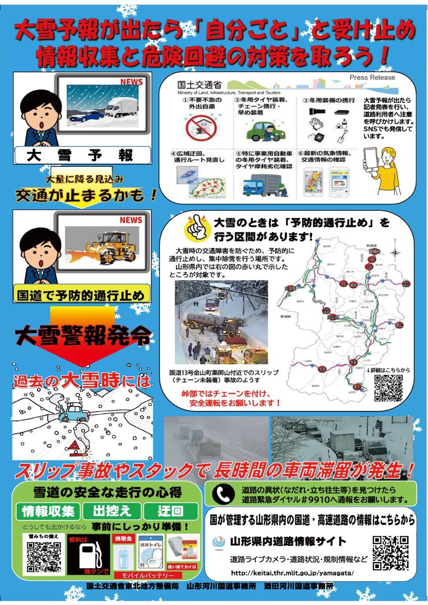 #雪みち情報 本日から明日にかけての夜間に #国道112号 #月山道路 で降雪及び路面凍結が予測されています 今後の気象情報、道路情報に十分注意いただき、車でお出かけの際は #スタッドレスタイヤ #チェーン 等滑り止めを装着のうえ通行されますようお願いします pic.x.com/hHnrlASqJt