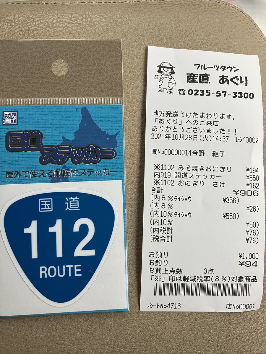 #国道ステッカー #国道112号 #産直あぐりさん (アーカイブポスト) ⭐︎今回の旅で訪問、購入した国道ステッカー販売店情報 訪問日 2025.10.28(火)14:35 ⑧国道112号販売店 山形県鶴岡市 (株)産直あぐり 国道112号ぞいにある販売店。 昨年に引き続き再訪問! R112ステッカーを再び購入! pic.x.com/HSYi4VKXyn