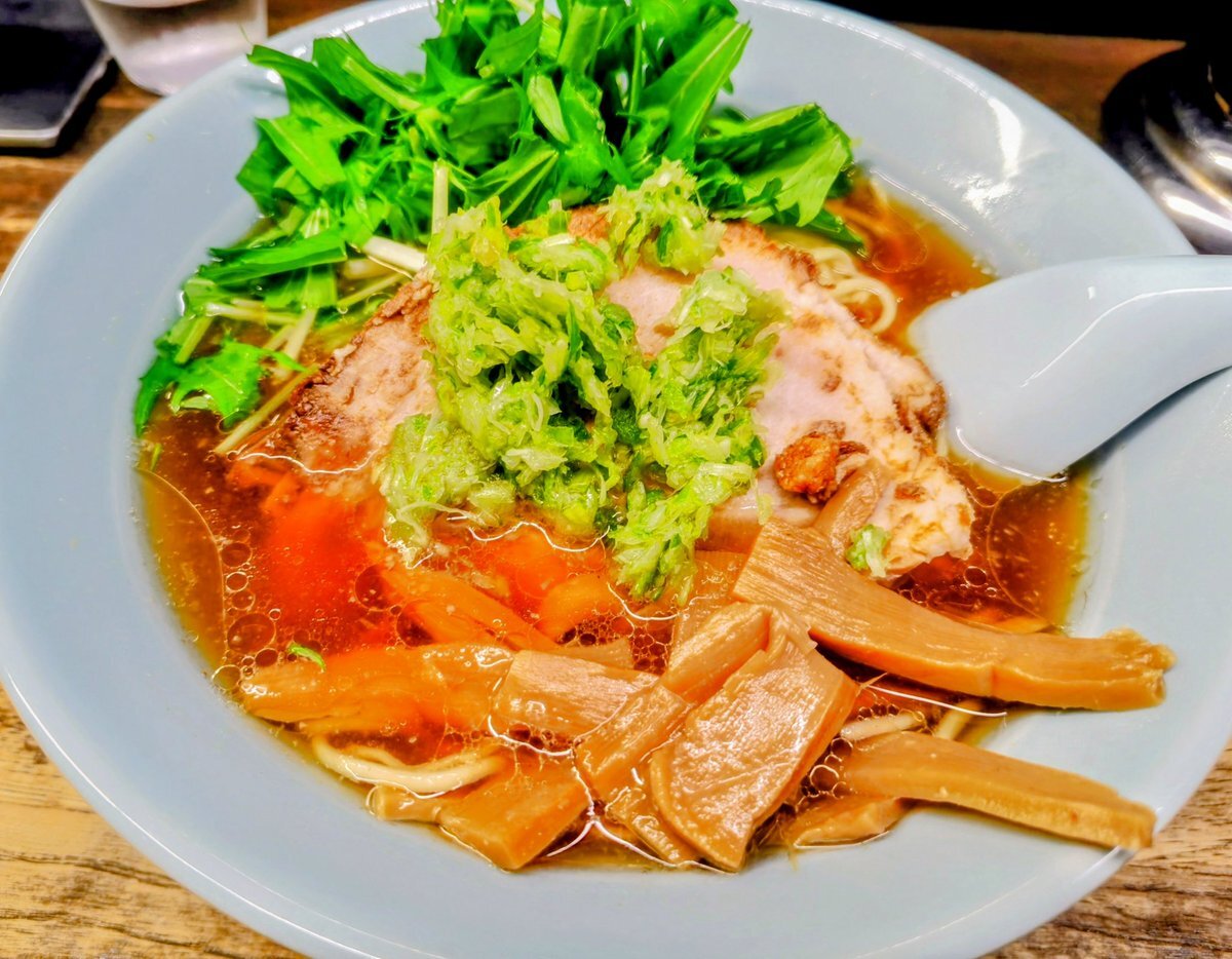 国領の老舗ラーメン屋さん熊王の「しょうゆ(入り)900円」😀入りとは「ニンニク入り」の総称。生姜がの効いたスープにみじん切りにし更に叩きを入れたネギの薬味が良い仕事してます✌うちの地元のソウルフードです✨️#ラーメン #熊王 #国領 pic.x.com/d0vbkXnVNA