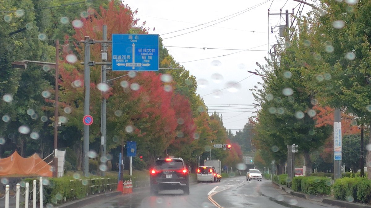 品川通り府中辺り 雨でも街路樹が色づいてきれいですね 車返し団地→競馬場→味スタ→飛行場通り 安全運転 写真は停車中です 12日水お休みします(通院) おそば美味しくできました 穏やかな日差しがどちら様にも届きますように #江戸藤 #狛江 #国領 #そば処江戸藤 pic.x.com/sCbXvls9v4
