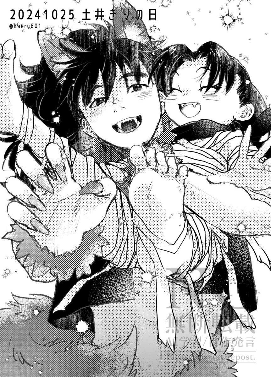 フライングですが、《第二回》土井きり日和開催と素敵なアンソロの発行おめでとうございます㊗️🎉👏 コチラは前回参加、の投稿分になりますがお手隙の際によろしければ〜(*´꒳`*) リプにリンクを繋げておきます #土井きり日和 #土井きりの日 【再掲】イラストにて失礼します🙇🏻‍♀️ pic.x.com/iejbJgACAH