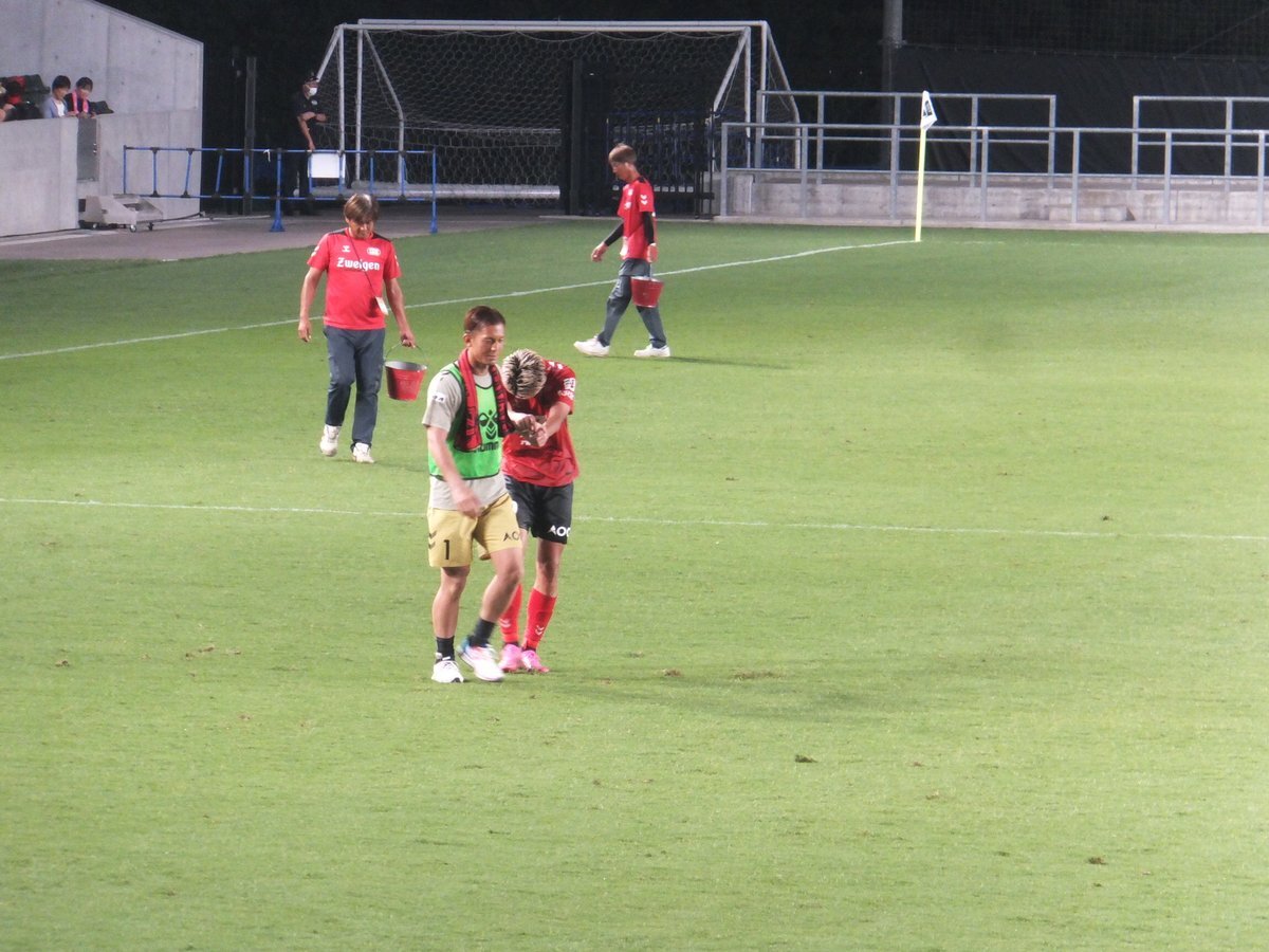今日のMOM大山選手のヒーローインタビュー中、試合でPK失敗した土信田選手を無理やりゴール裏に連行してきた白井裕人さん。そしてゴール裏で土信田選手に謝罪とエアPK練習をさせるだけさせて、自分だけ疾風の如く帰っていった裕人さんが今日の裏MOM(笑) #白井裕人劇場