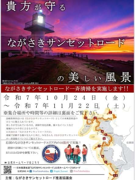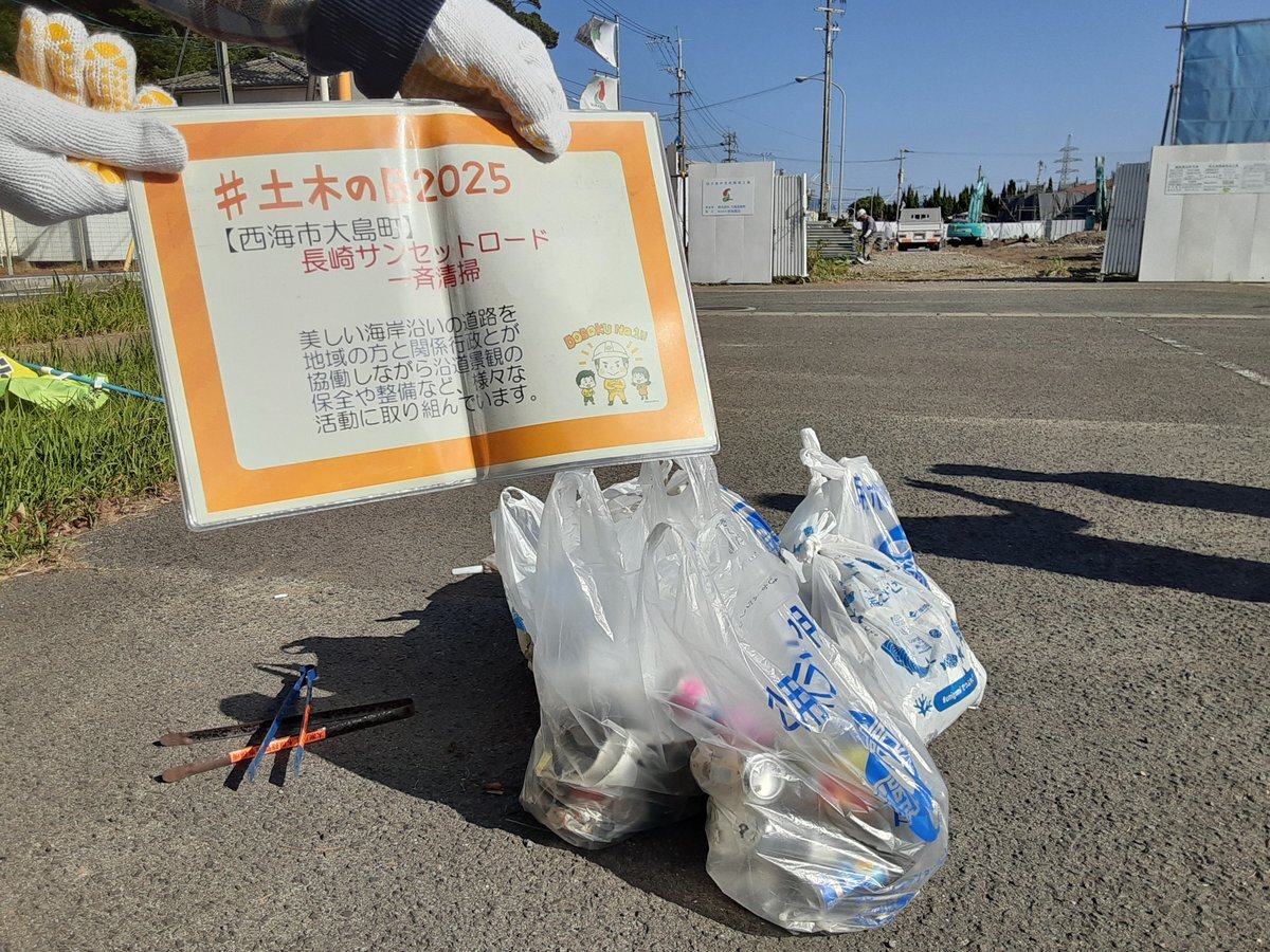先日(11/15)「ながさきサンセットロード一斉清掃」の一環として、地域のボランティア(アダプト事業)の皆様と共に西海市大島町内の県道の清掃に参加してきました。 道路や海岸の美しい風景は地域のボランティアの皆様の協力により保たれています。 #土木の日2025 #ながさきサンセットロード pic.x.com/JoNRpPGLZ3