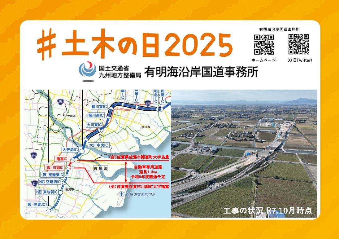 【11月18日は土木の日】 #有明海沿岸国道事務所 も「土木の日SNSアクション」に参加します。 HPには工事の進捗状況も載せているので是非見てくださいね。 ↓ 有明海沿岸国道事務所HP qsr.mlit.go.jp/arien/index.ht… #土木の日2025 #九州地方整備局 #有明海沿岸道路 pic.x.com/Z21W3daWnE