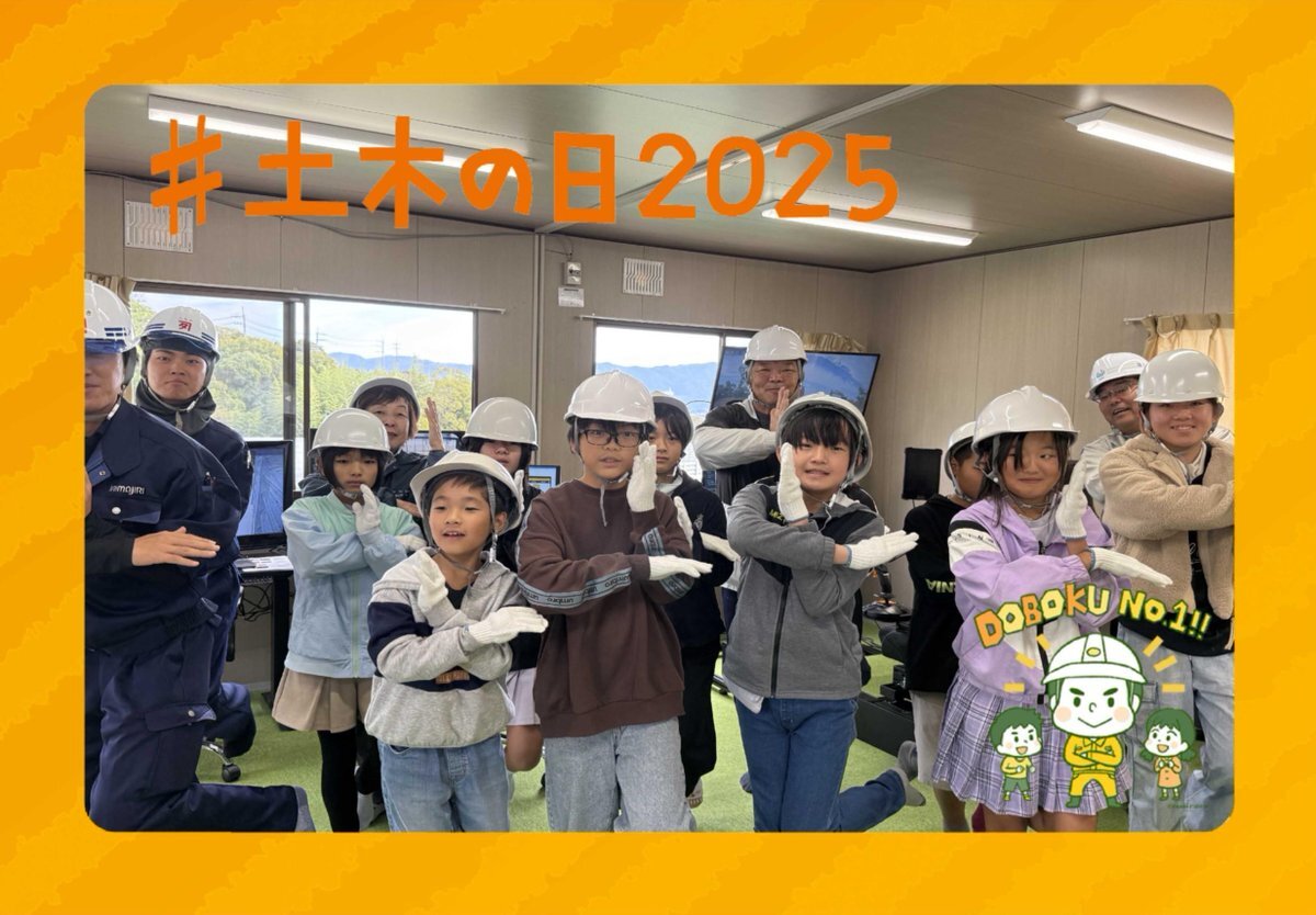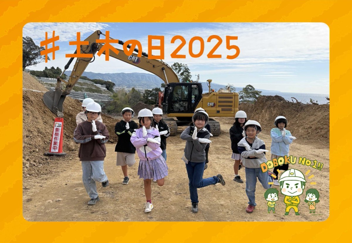 11月18日は「土木の日」です! 本日、南国安芸道路にて地元小学生を現場に招きICT施工StageⅡと遠隔施工の現場見学会を開催しました!! #土木の日2025 #四国の建設産業を盛り上げたい #小学生やにポーズ決まりすぎちゅう! pic.x.com/19f8XoqliV